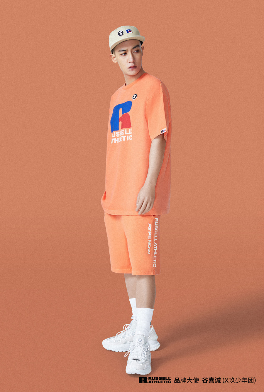 新生代演员、X玖少年团成员谷嘉诚受邀成为 RUSSELL ATHLETIC 品牌大使,上身示范此次联名服饰。