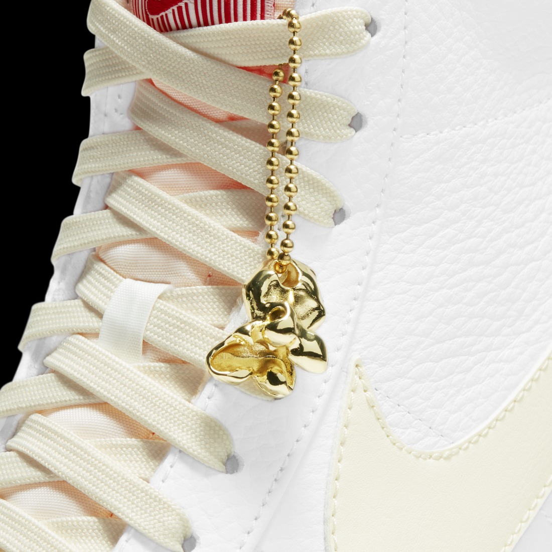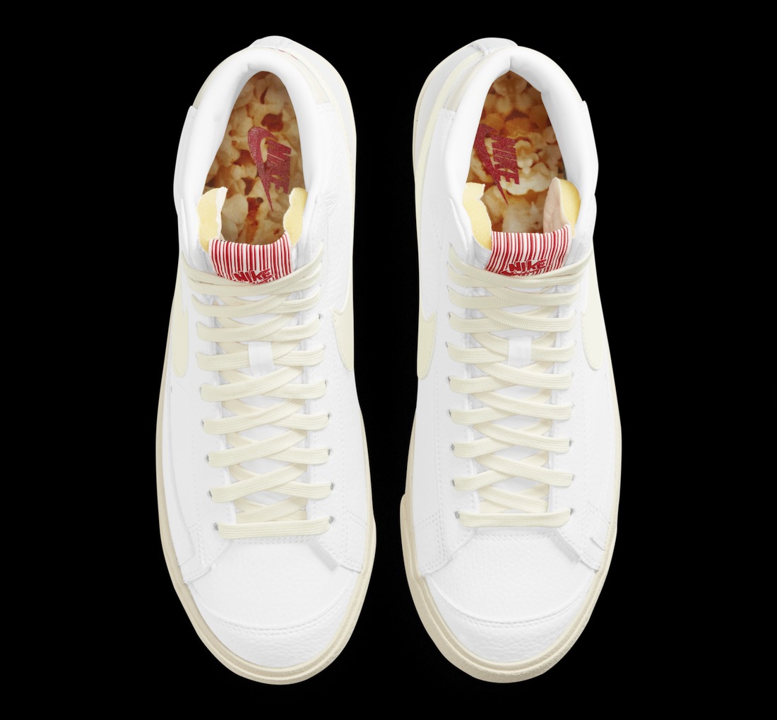 鞋带、后跟、侧身 Swoosh、中底及外底均选用了奶油色,灵感来源于在电影院中售卖的爆米花。