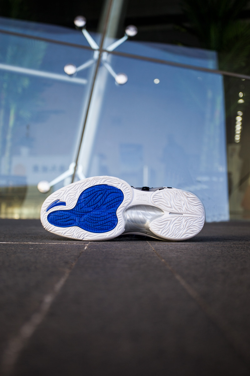 鞋身以大面积白色妆点,并在细节处注入蓝色点缀,整体配色相当养眼。
