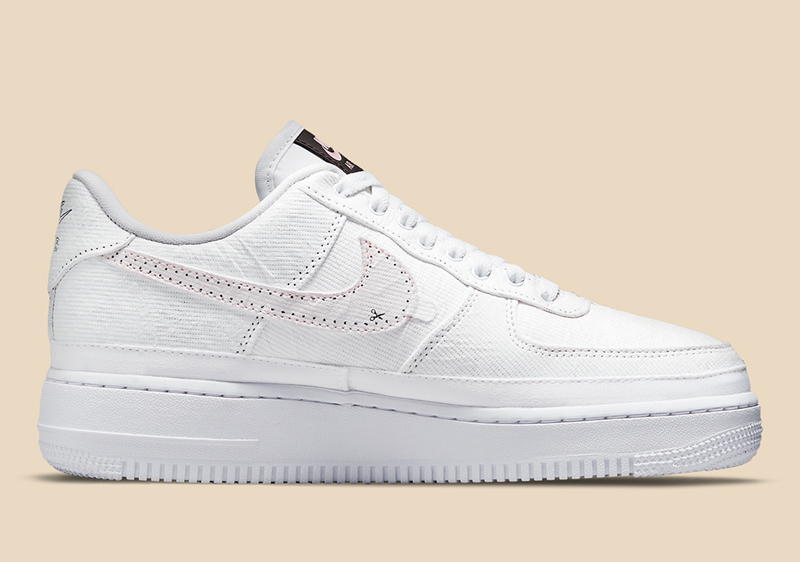 整体外观与去年登场的纯白 Air Force 1 Low 如出一辙,鞋头与 Swoosh 点缀有虚线及剪刀图示,暗示可撕玩法。