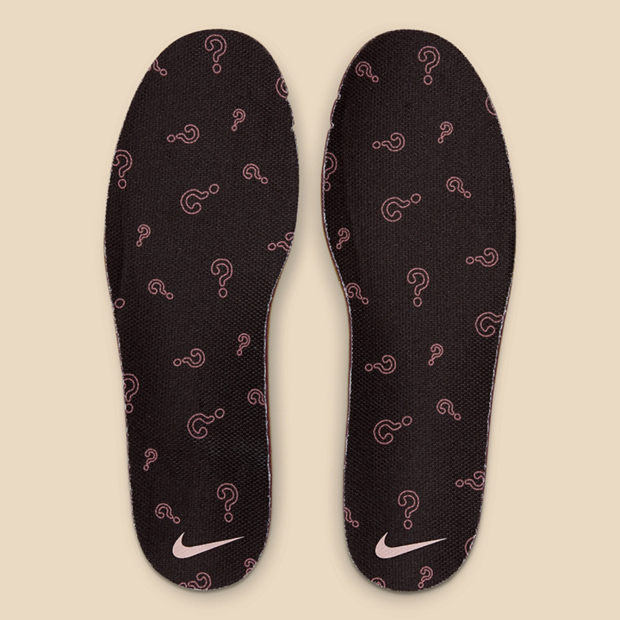 撕开表面白色表面,则呈现出不同纹理织物的色调渐变,带来细腻又精致的感官体验。Swoosh 部位则采用荔枝皮革营造,与其他部位作出区隔,进一步丰富质感层次。