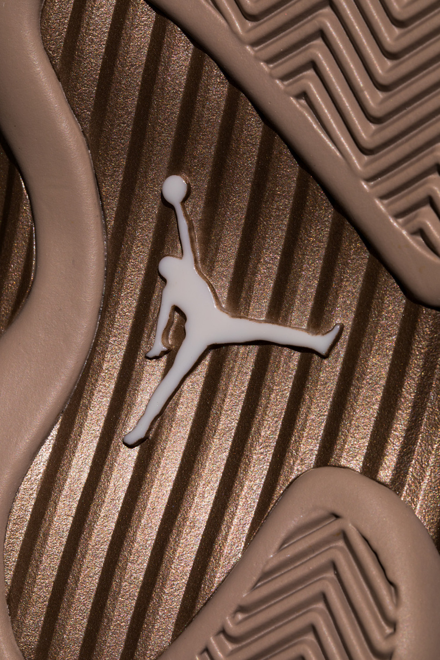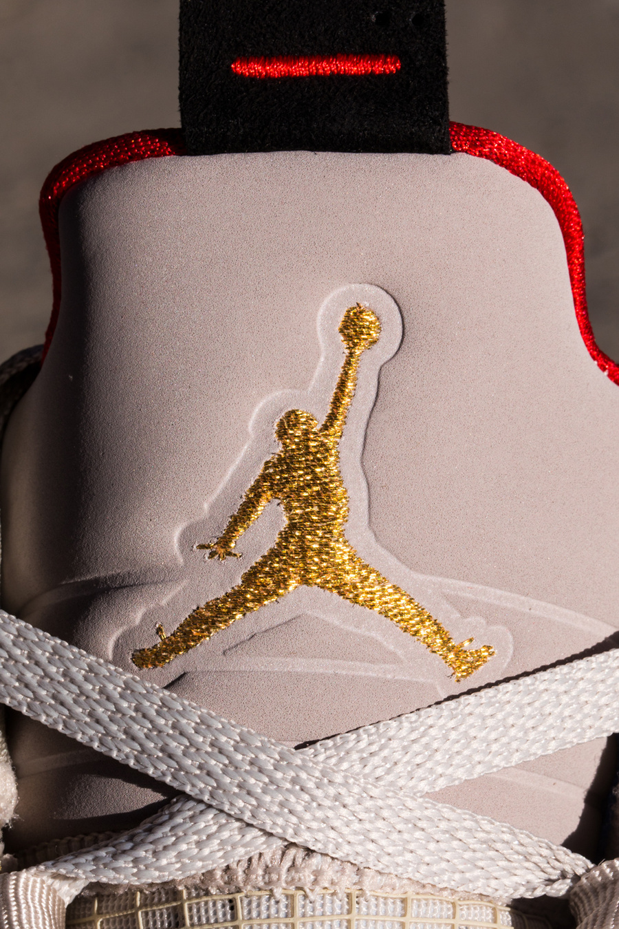 鞋舌上硕大的金色刺绣 Jumpman Logo,呼应鞋带孔的同时增添奢华气质。