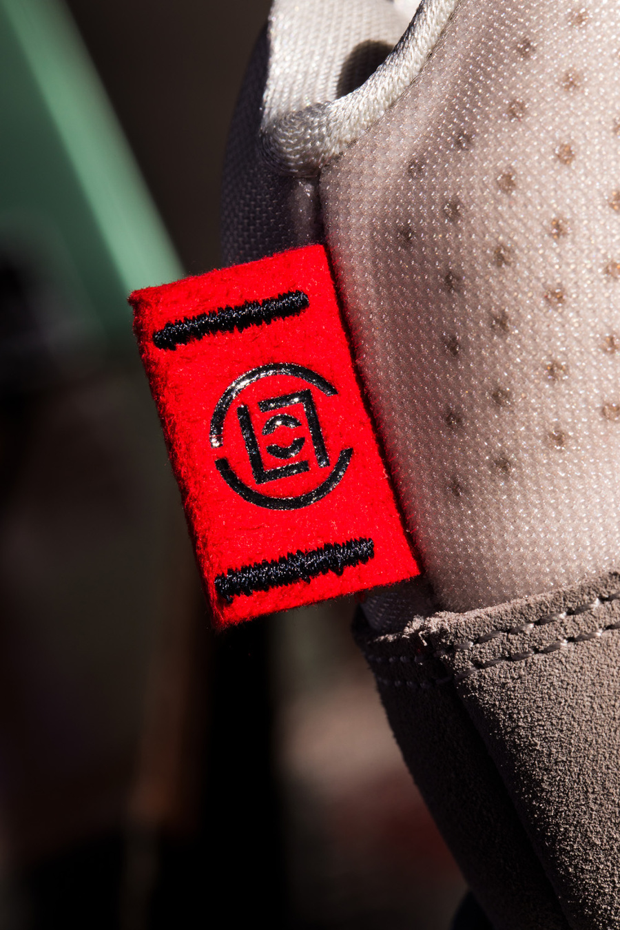 鞋头等部位都加入了象征中国玉的淡绿色细节,同时 CLOT 的品牌元素