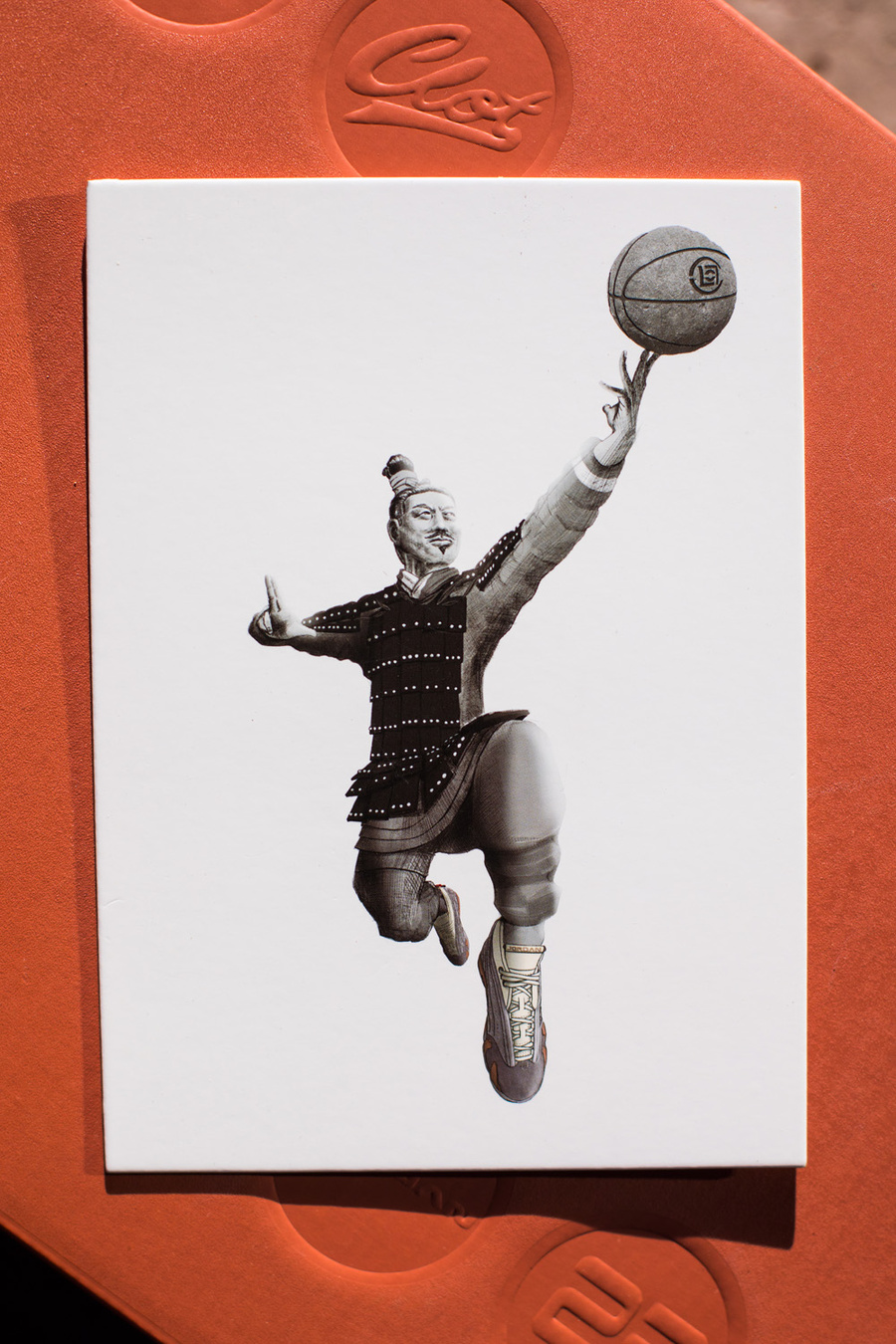 鞋盒内附带一张卡片,印有兵马俑上篮的图案。
