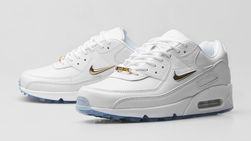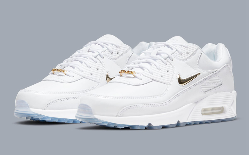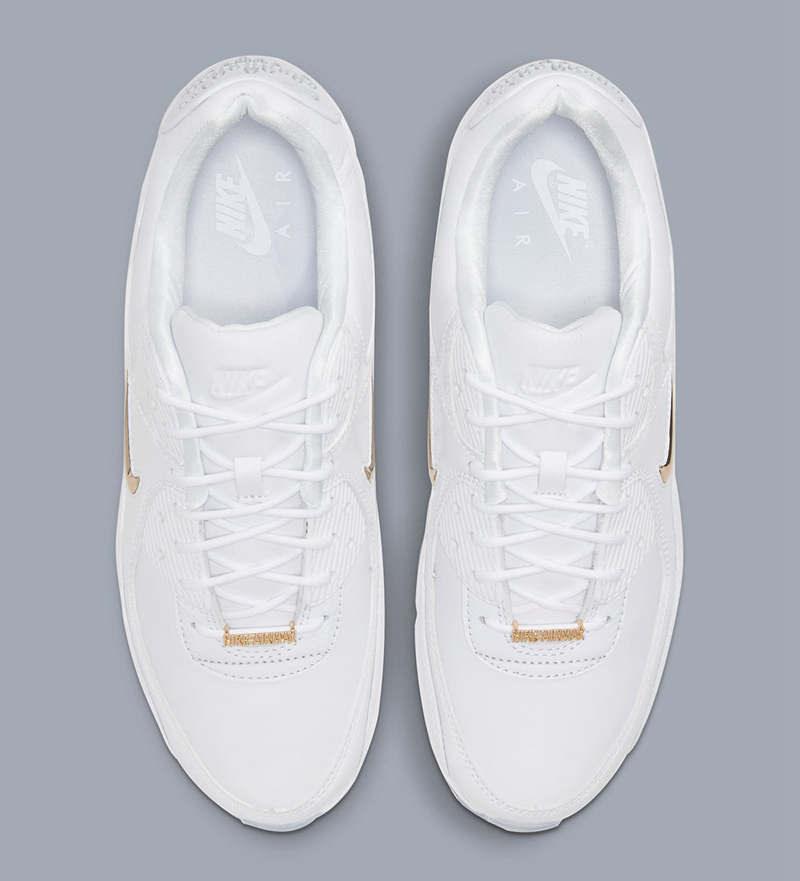 鞋侧 Swoosh Logo 以金色呈现,搭配金色鞋带扣,极具吸睛度。