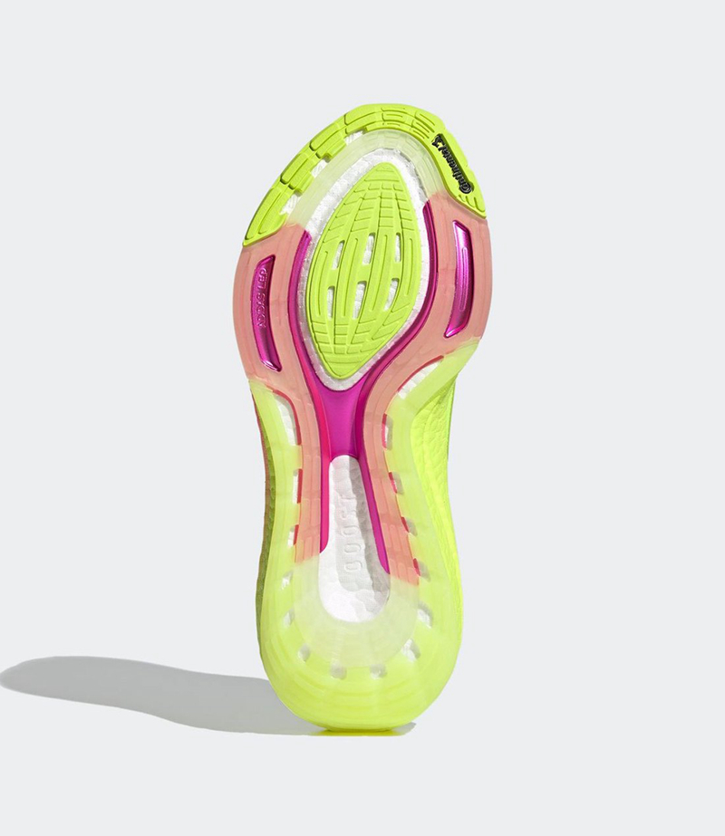 超厚 Boost 中底同样呈现荧光黄色,整体配色十分风骚,脚感也相当优秀。
