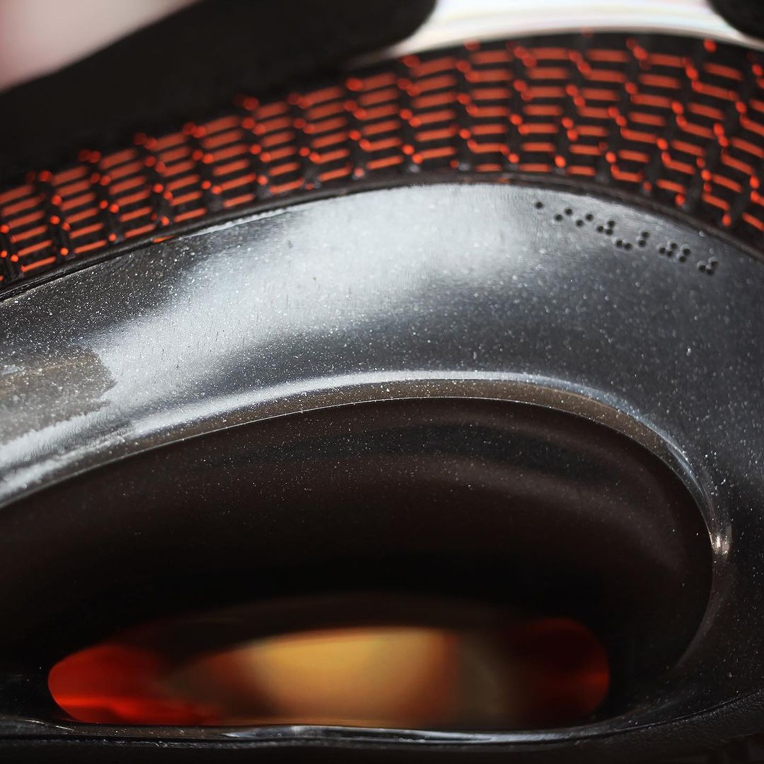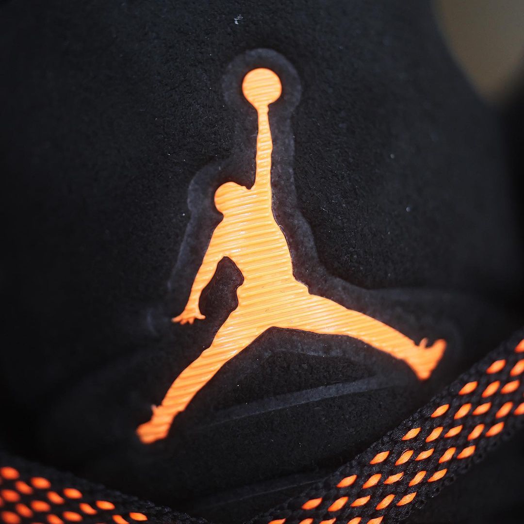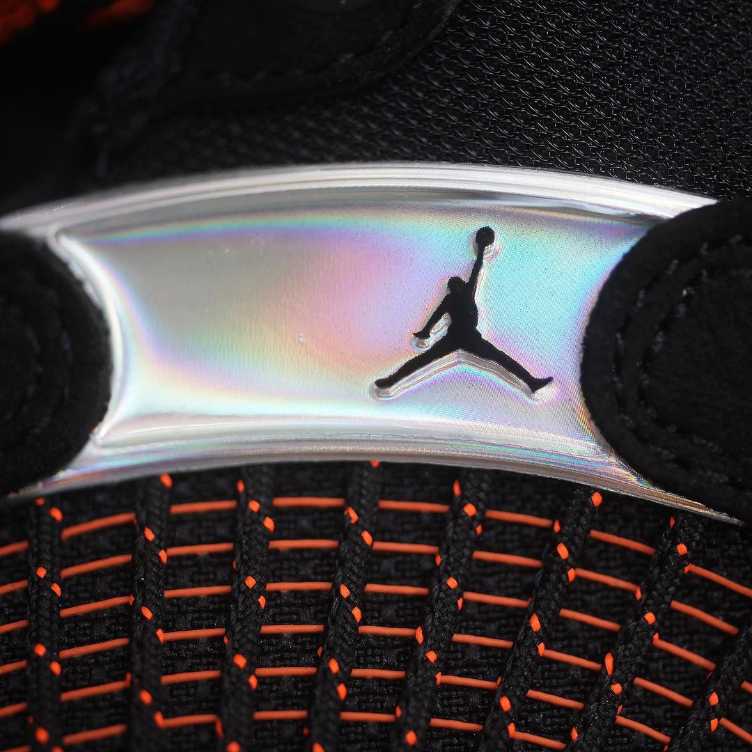 整双鞋采用劲酷黑色为主调,搭配橙色的 Jumpman Logo 与鞋带,给整体低调的鞋面带来不少亮眼效果。