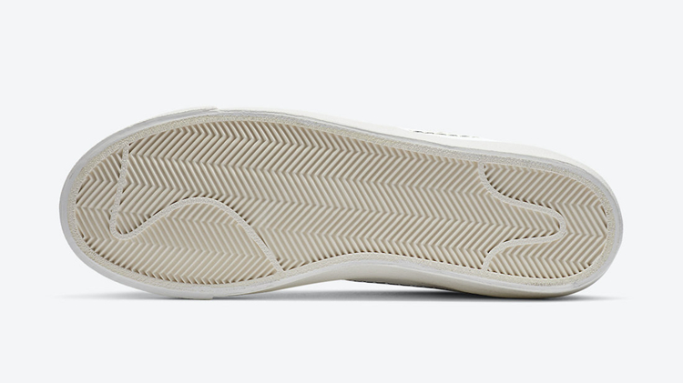 鞋身以大面积白色皮革打造,同时采用灰色麂皮覆盖鞋头,延续 Blazer Mid 一贯的高品质。