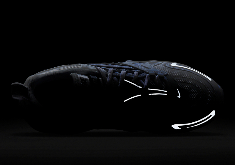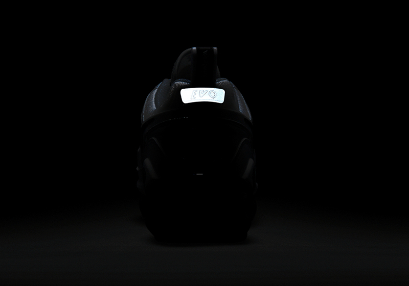 鞋头及后跟添加 3M 反光细节,在暗光环境中吸睛度十足。