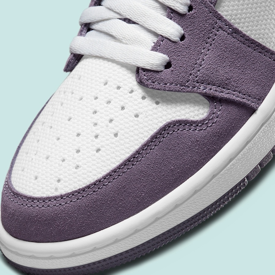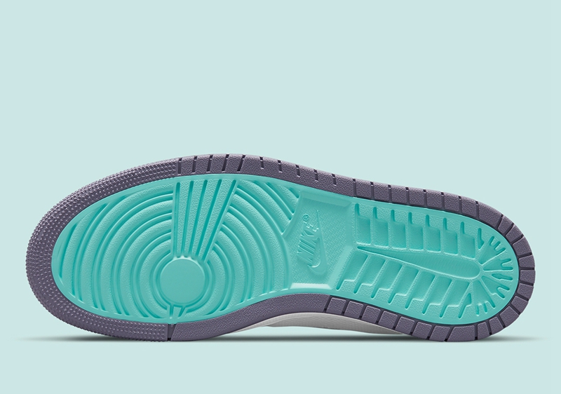 侧身处的紫色 Swoosh Logo 依旧采用镂空设计,诠释自身 Air Jordan 1 Zoom Comfort 身份,吸睛效果十足。