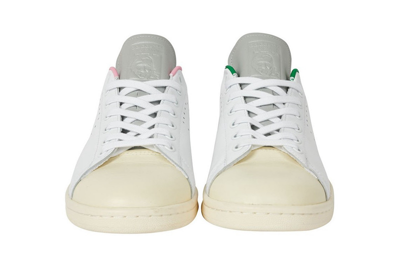 其中一双以经典白色皮革搭配做旧鞋头以及中底呈现,鞋侧打孔改为 P 字排列,彰显联名身份。