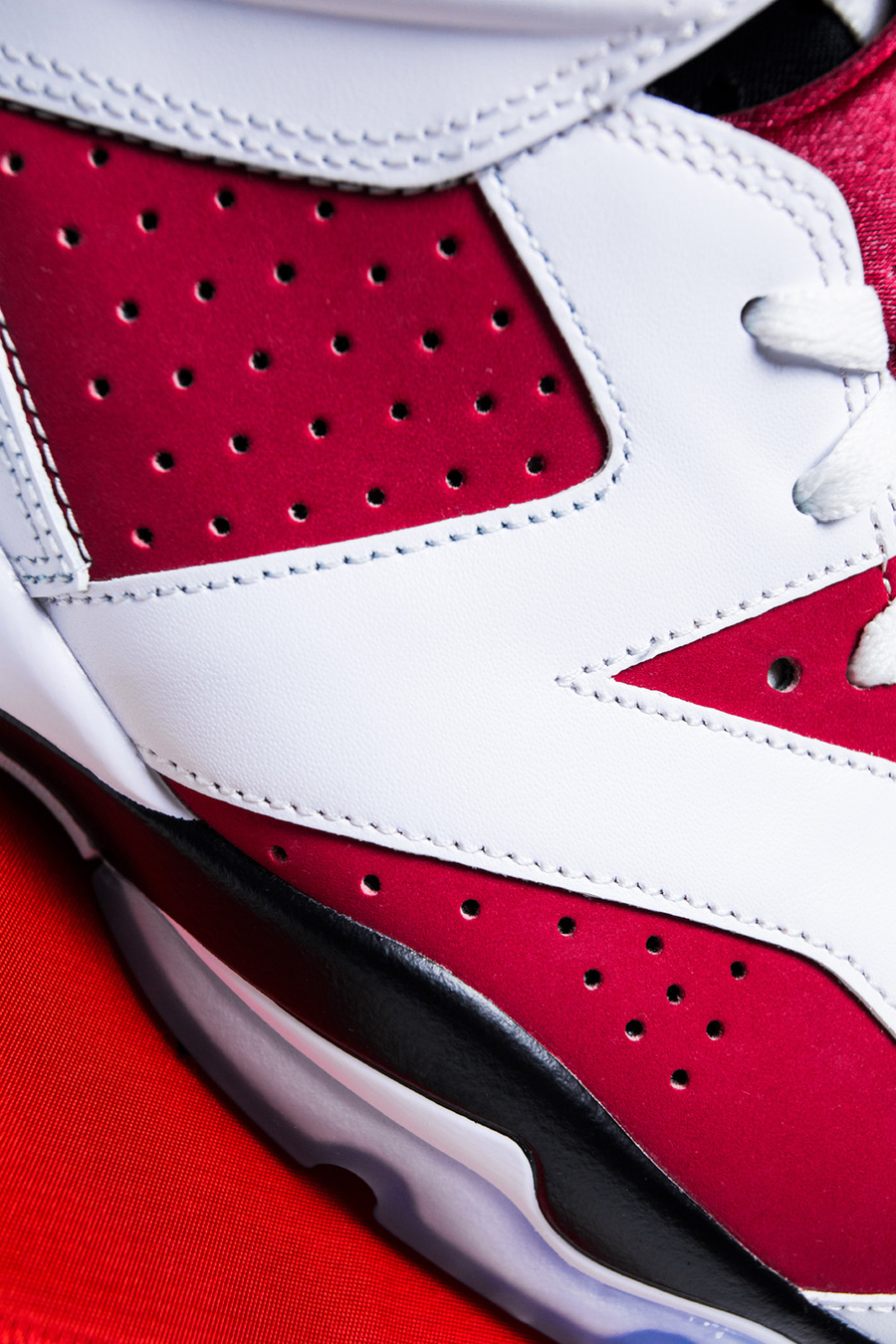 鞋面由牛巴革与粒面皮革拼接打造,依旧是 Air Jordan 6 的传统规格。