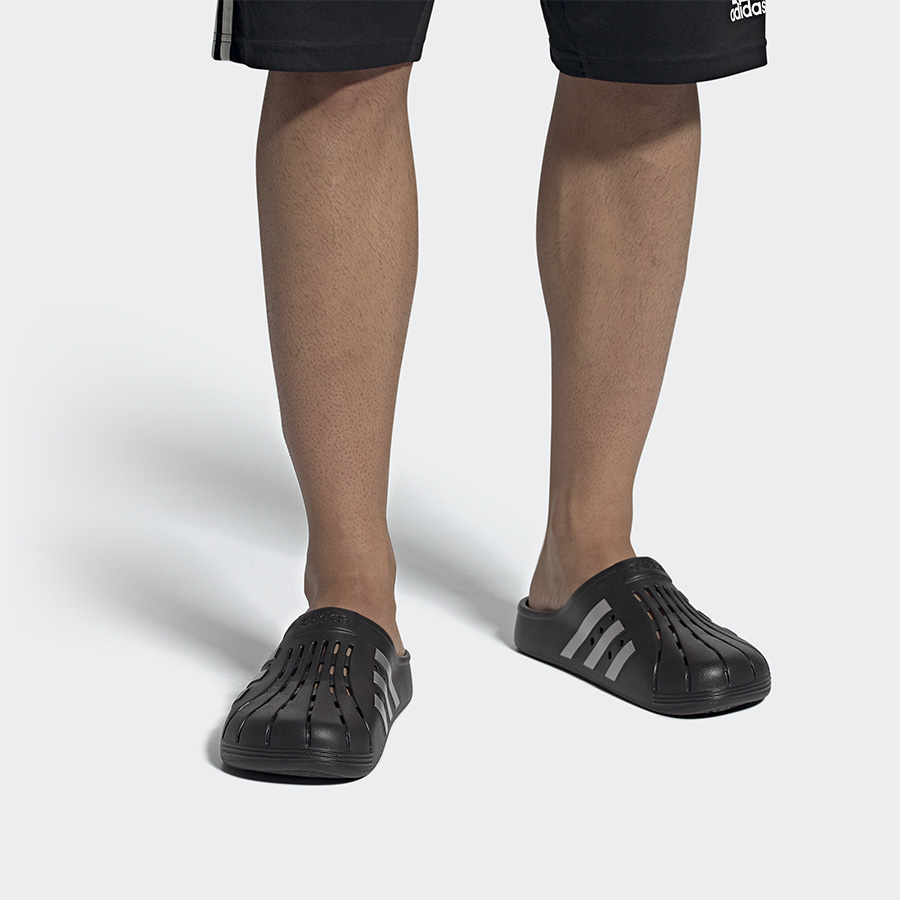 今年依然有 adidas Originals 旗下的凉拖新品,这双 adilette clog 在承袭「洞洞鞋」的熟悉感受之余,标志性的三条杠则格外的显眼。