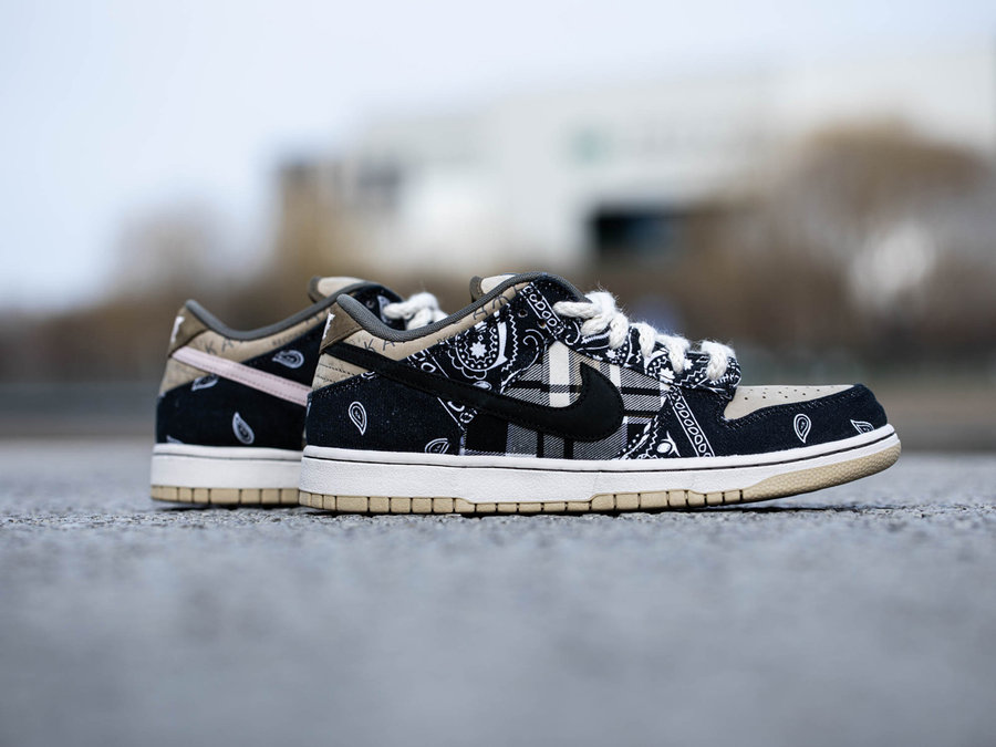第一双就是这款颜值、话题度都不缺的 Travis Scott x Nike Dunk SB Low,当时由于疫情原因以及 SNKRS 不发等诸多原因,市场价堪比坐火箭,一路飞涨。