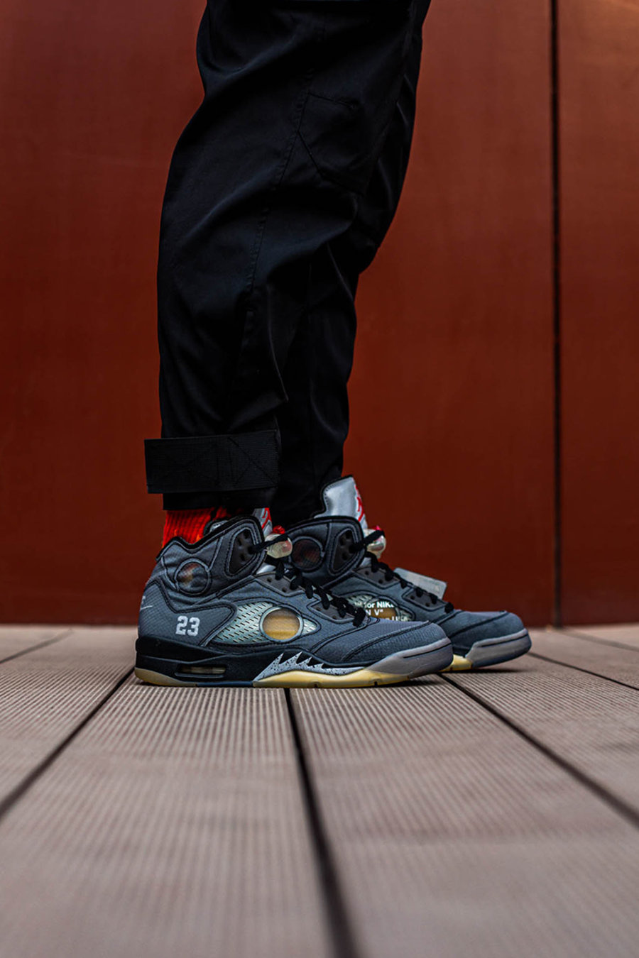 OFF-WHITE 与 Jordan Brand 在打造了黑色 Air Jordan 5 之后,又带来了一款黄色版本。超吸睛的氧化设计以及蝉翼鞋面俘获了不少大牌明星。