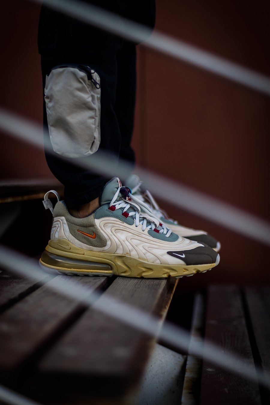 Travis Scott 同 Nike 的每一款联名都极具话题热度,这双 Nike Air Max 270 既承袭自己一贯 Cactus Jack 的沙漠丛林主题,又引入丰富鞋身材质与上色手法,一眼就能看出是 Travis Scott 的鲜明个人风格。