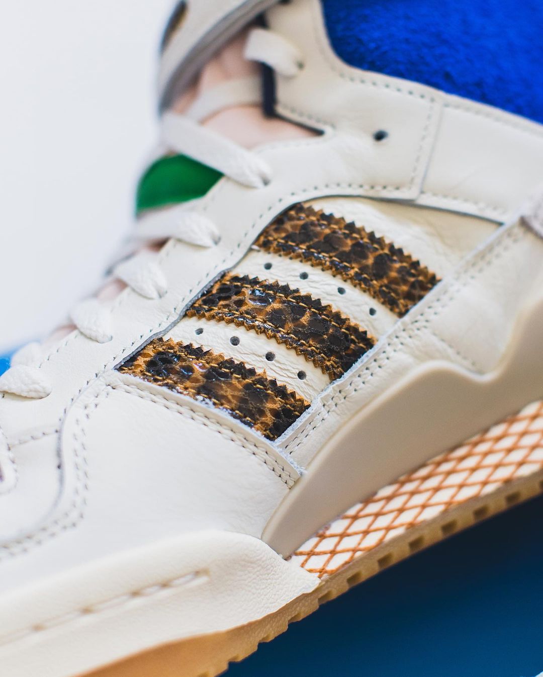 这双 Bodega x adidas Originals Forum 84 Hi,采用了顶配的材质用料,皮革鞋身呈现翻毛皮的三条杠,连内衬都是皮革打造。