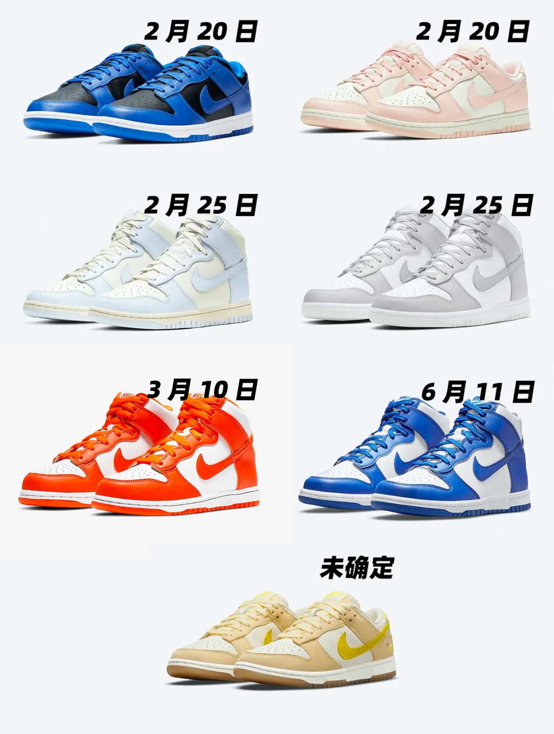 所以,目前包括这双「高帮雪城」在内,一共有 7 双 Dunk 家族的新品在排队等待发售,这你受得了吗!?