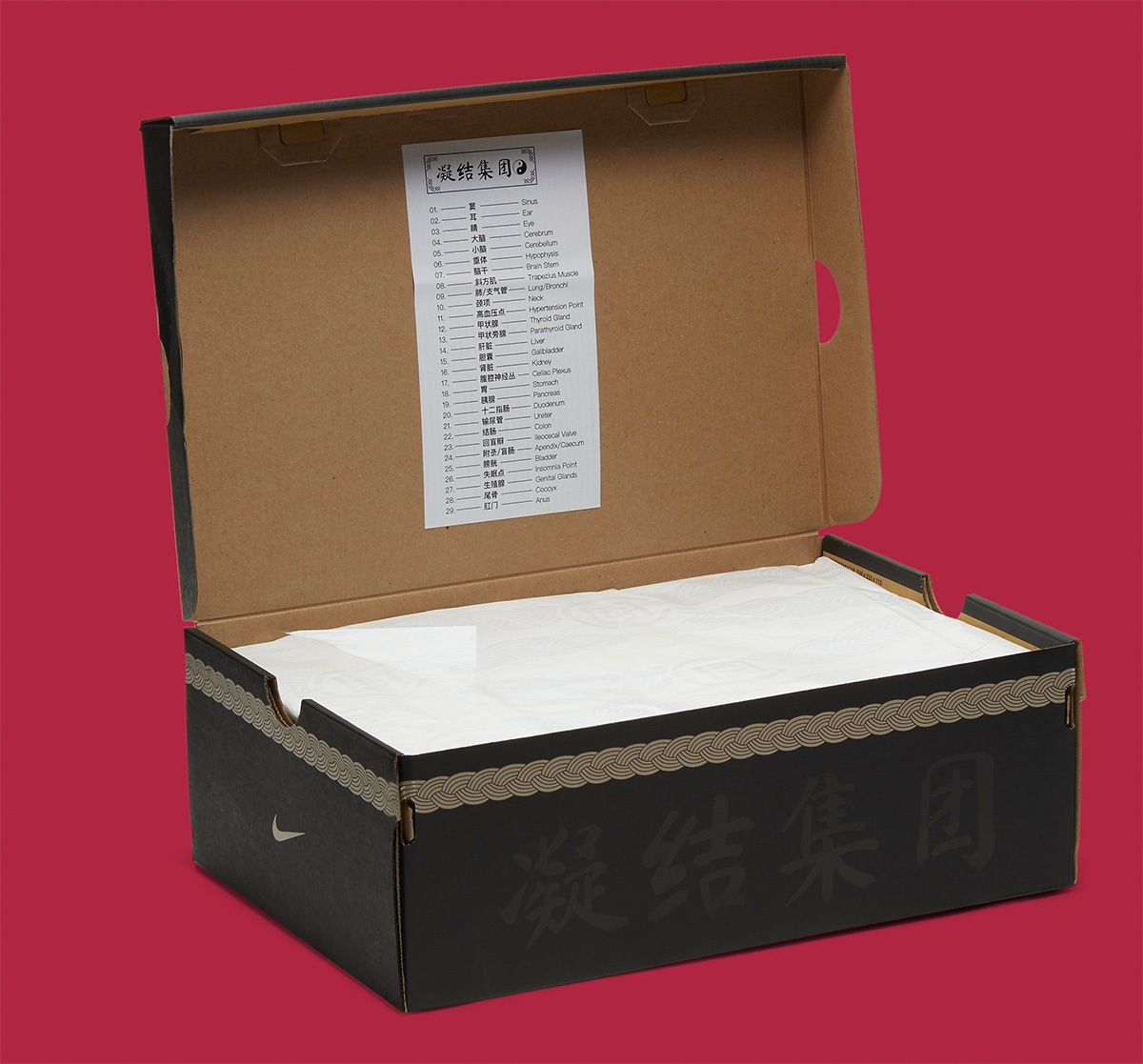 这双鞋对于球鞋圈和陈冠希的意义都相当重大,15 年前的球鞋产业远不如当下这样繁荣,同中国文化的融合之作更是少之又少。