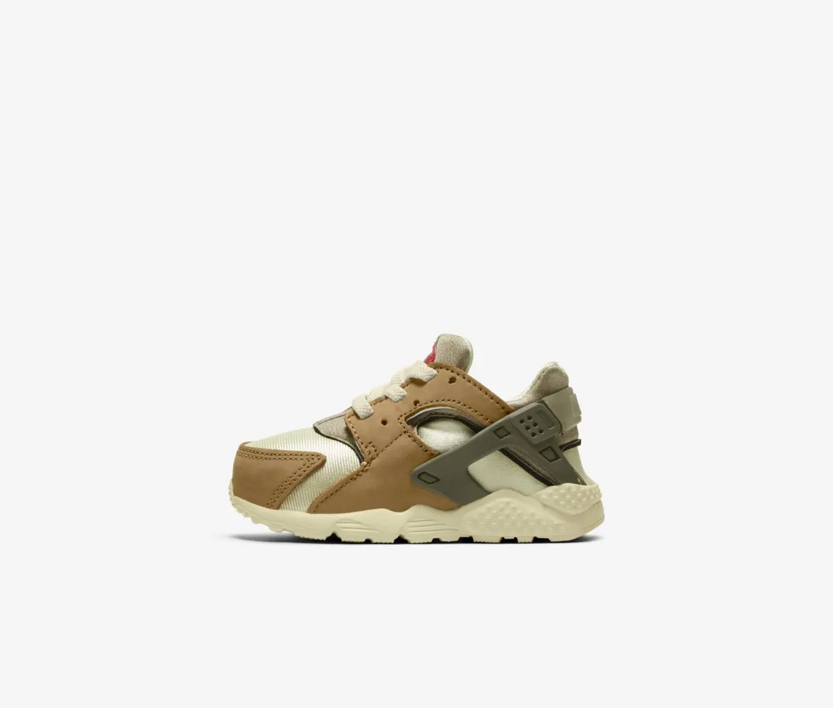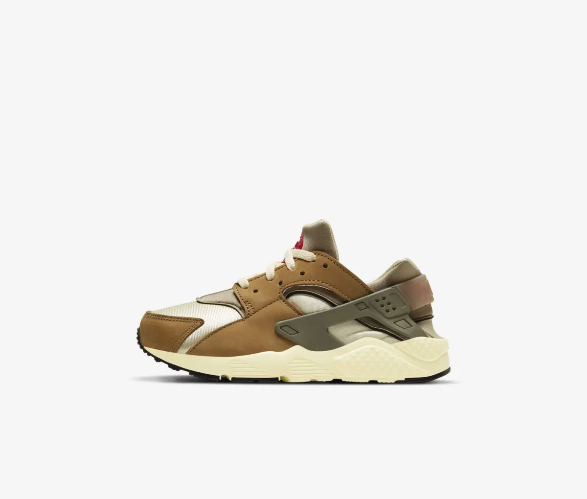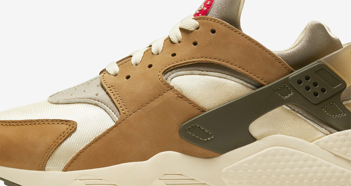 再熟悉不过的 Nike Air Huarache 造型,运用了土褐色和橡木棕呈现大地色调,虽然鞋型设计并无亮点,但这样的配色装扮还是颇具辨识度的。