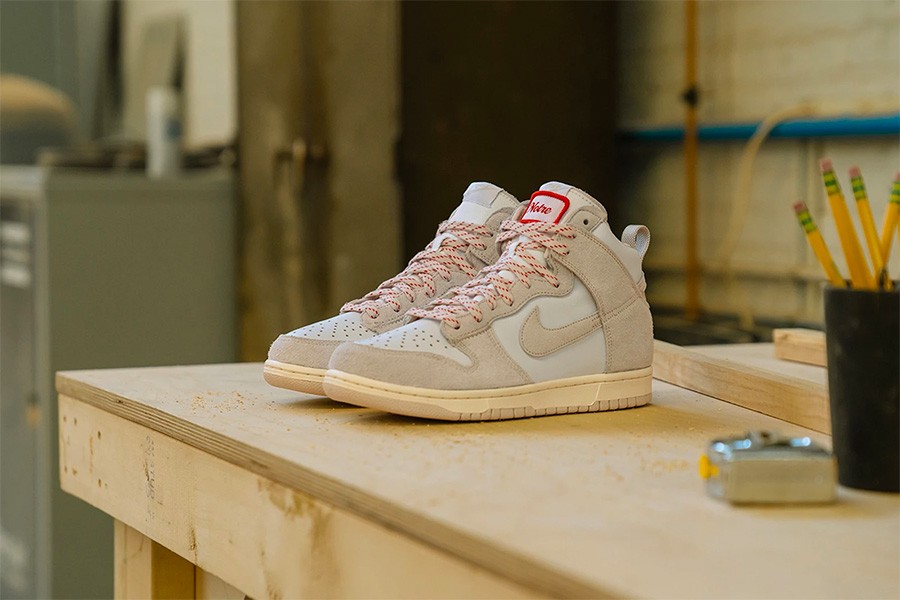 芝加哥球鞋店铺 Notre 和 Nike 联名带来的这双 Dunk High,翻毛皮和帆布搭配,营造了熟悉的 OG 复古效果。