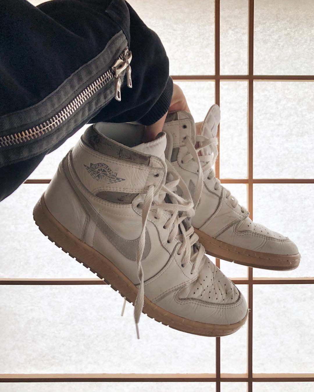 前几天刚发售的白灰 Air Jordan 1,绝对是 Vibe 风最有代表性的球鞋,Ken lijima 本人就曾晒过元年版本,因此收到更多人的关注。