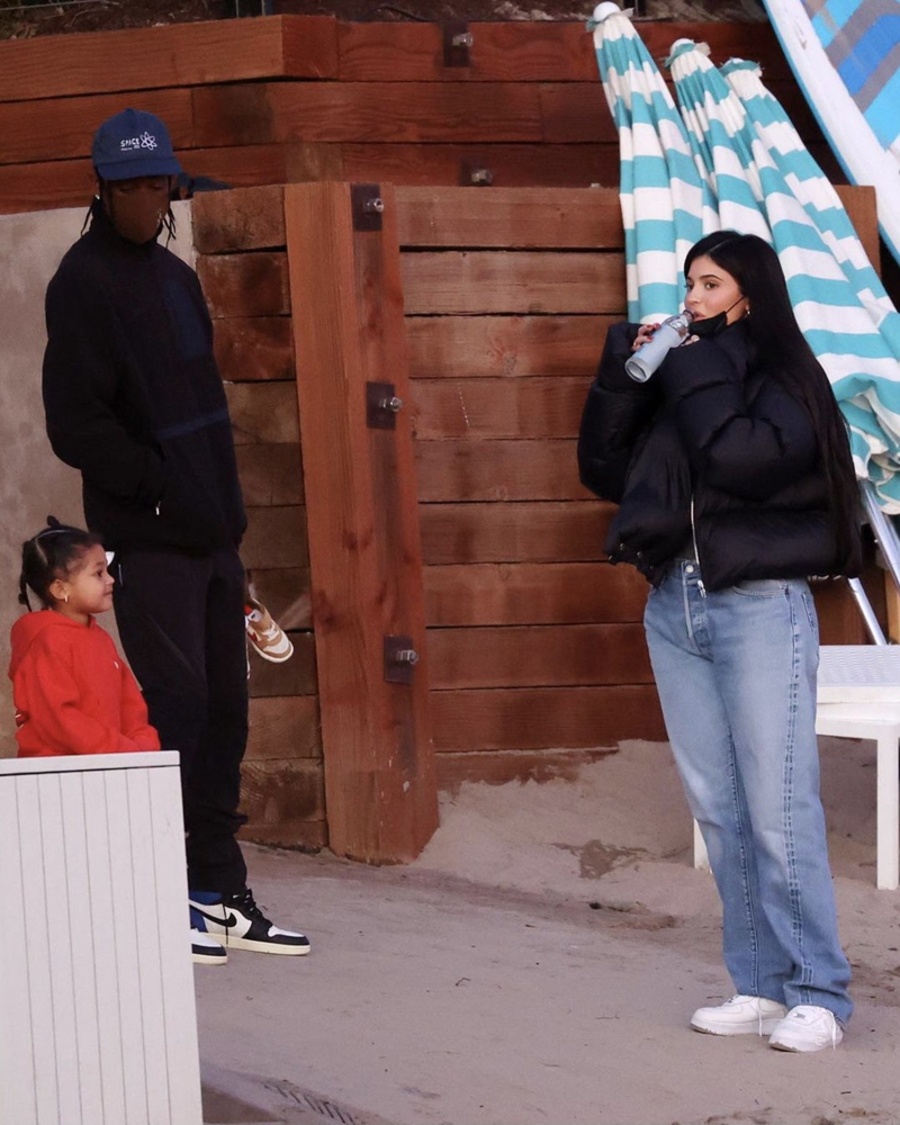 近期 Travis Scott 在与 Kylie Jenner 见面时,上脚一双高帮版本「反钩」。