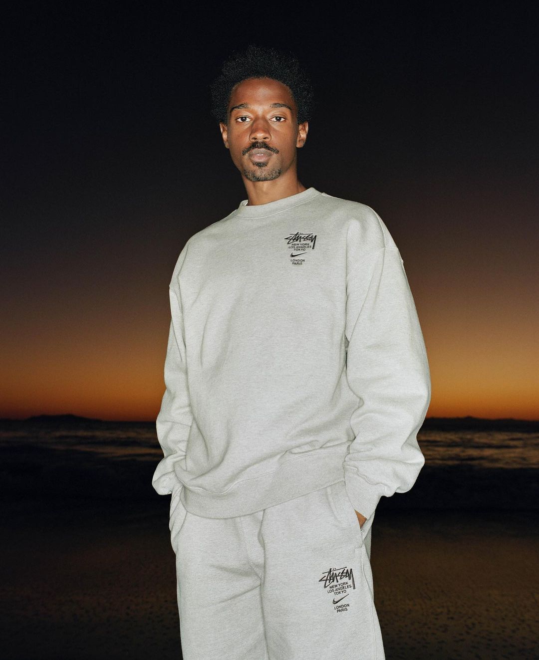 虽然鞋身没有明显的 Stüssy 标志,但运用土褐色和橡木棕呈现的大地色调,搭配麂皮材质与半透明烟熏色后跟鞋提,还是颇具辨识度。