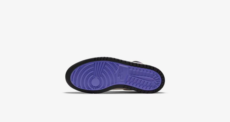 鞋面采用黑脚趾配色,鞋帮处的粉色及紫色渐变扎染呈现出一种颇为绚丽的视觉效果,极具吸睛效果。
