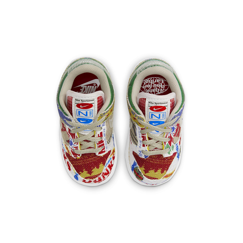 细看鞋身中还穿插有 Nike 及 Dunk 相关的图像文字。