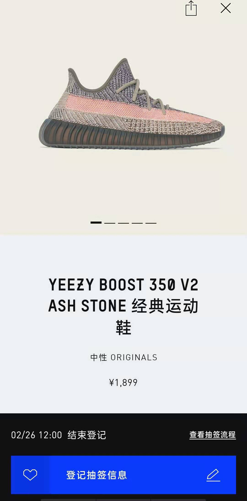 本周,终于有一款高人气新配色「Ash Stone」开启登记,喜欢 Yeezy 的玩家们快把春季新鞋安排上!