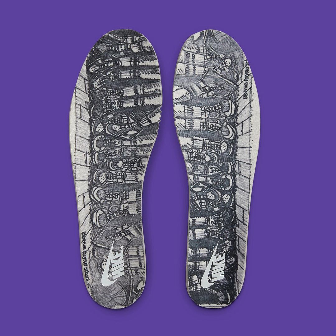 鞋垫图案与外层衬纸相同,可以清晰的看出画中有一排穿着 Dunk 鞋款的脚。