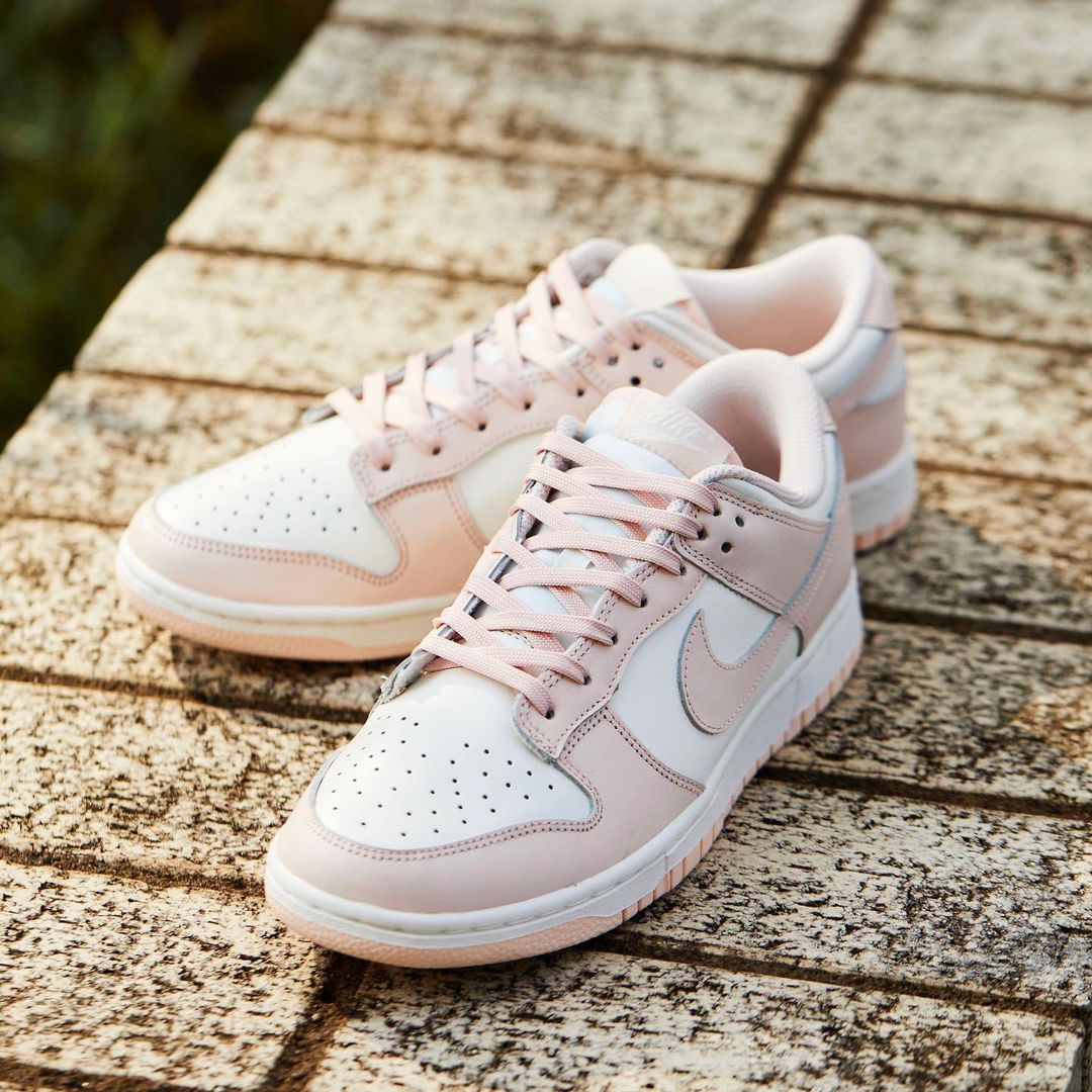 以低饱和度的珍珠粉色打造鞋身框架,辅以乳白色填充鞋面,带来极为清新的视觉效果。