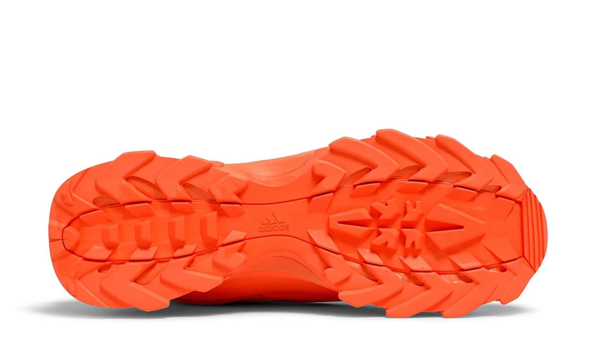 外底中足处呈现了 adidas 的标志,说明这双 Yeezy Boot 军靴是同三条杠品牌的合作产物。