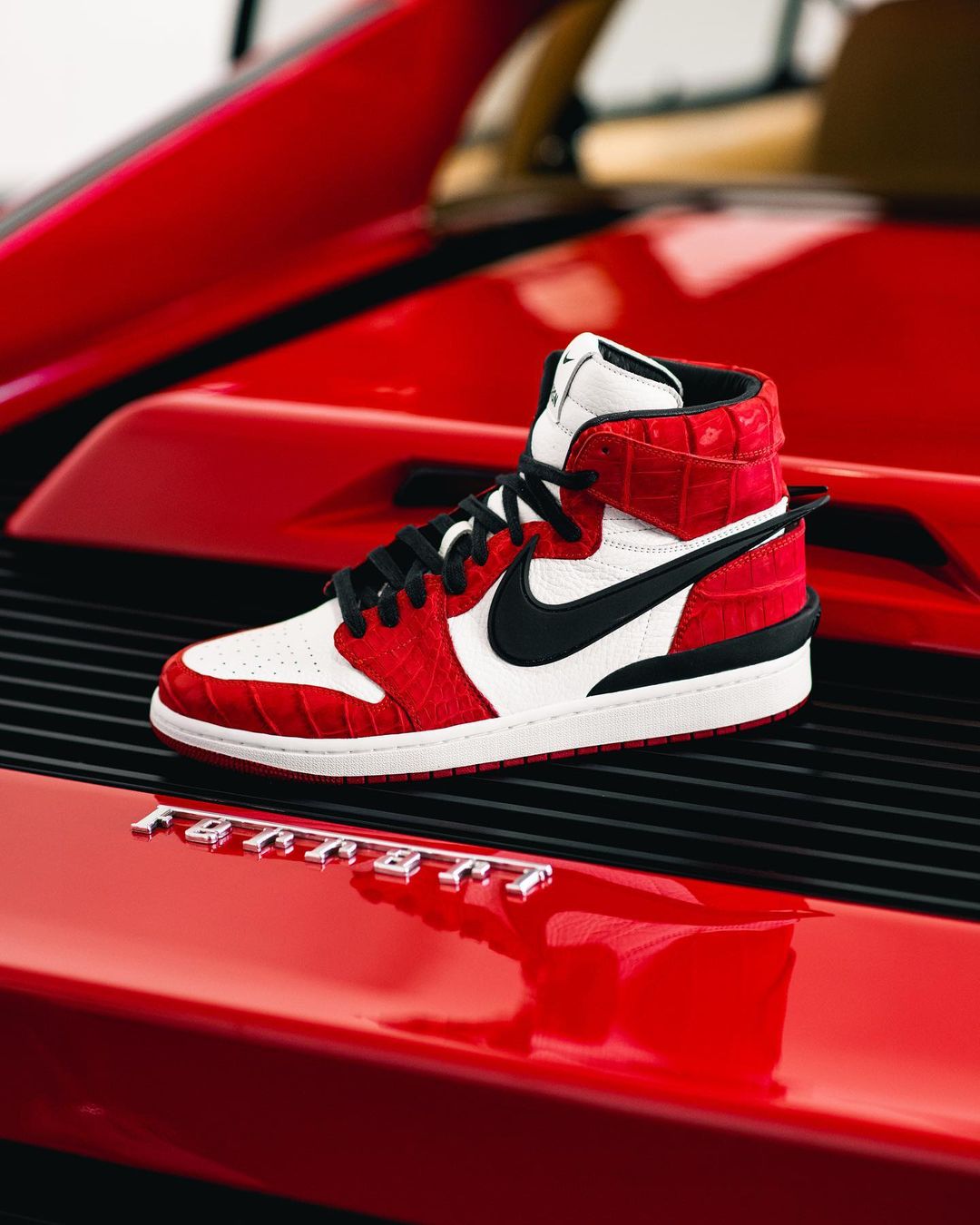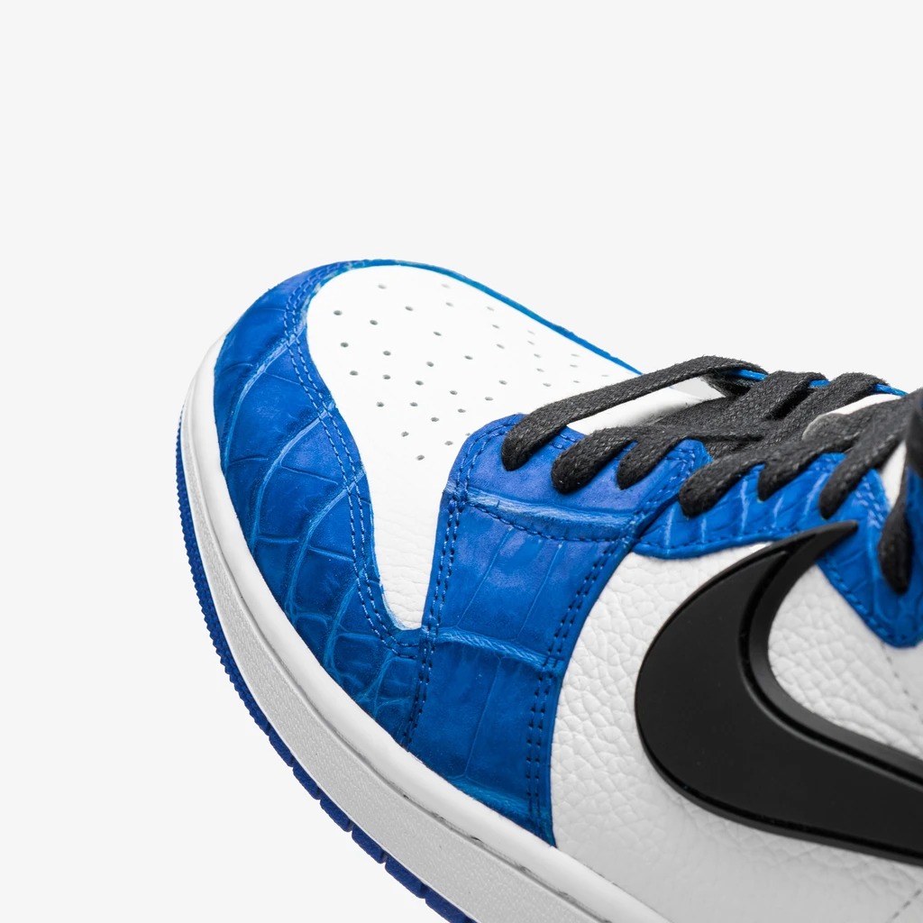 鞋面材质为鳄鱼皮搭配荔枝皮,依旧是极致奢华的定制风格,分别使用红色和蓝色,当然小编更喜欢芝加哥配色。