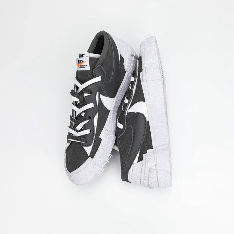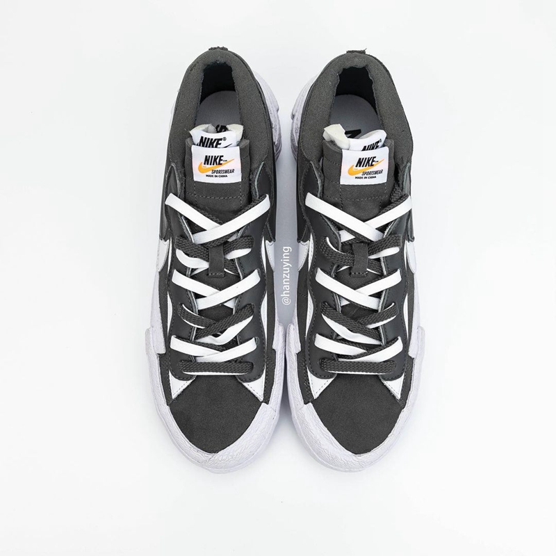 近期,又有一款经典黑白配色 sacai x Nike Blazer Low 实物图曝光。