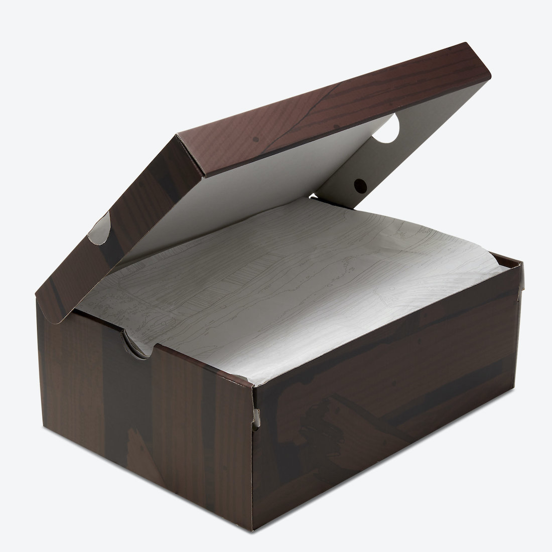 同时通过已经曝光的官图可以看出,此次复刻在鞋盒上以遵循了原汁原味的理念,木质纹理鞋盒让整双鞋更加具备入手理由!
