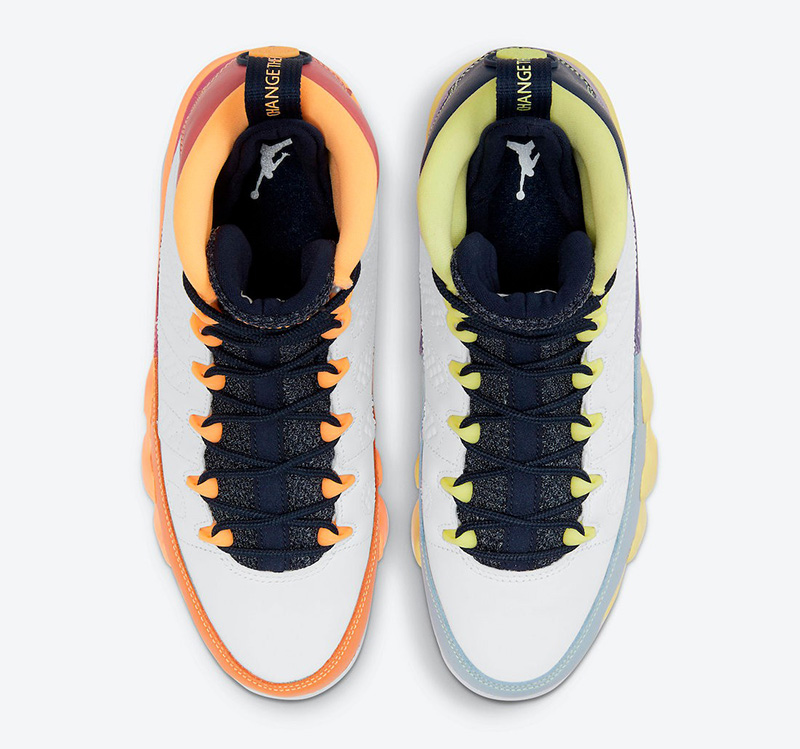类似 What The 的不对称鸳鸯撞色,为粗旷的 Air Jordan 9 注入了少见的时尚活力。