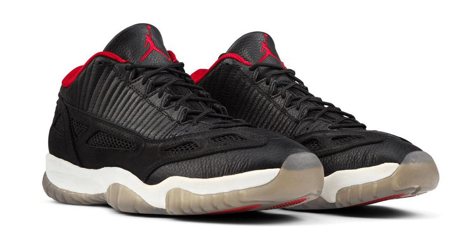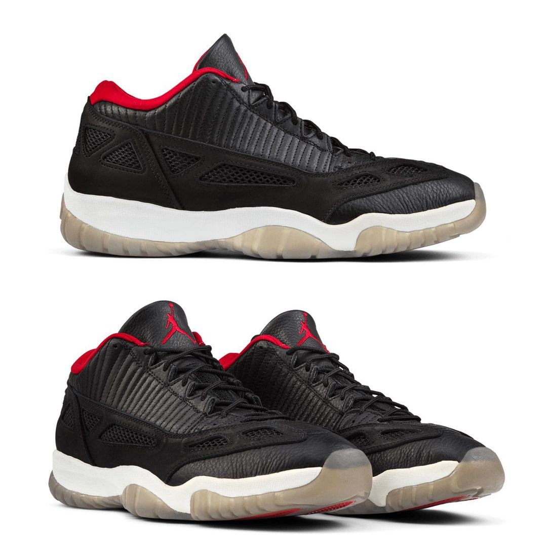 另一款则是 Air Jordan 11 Low IE 鞋型,永不过时的黑红主题无论怎么穿都不会出错。