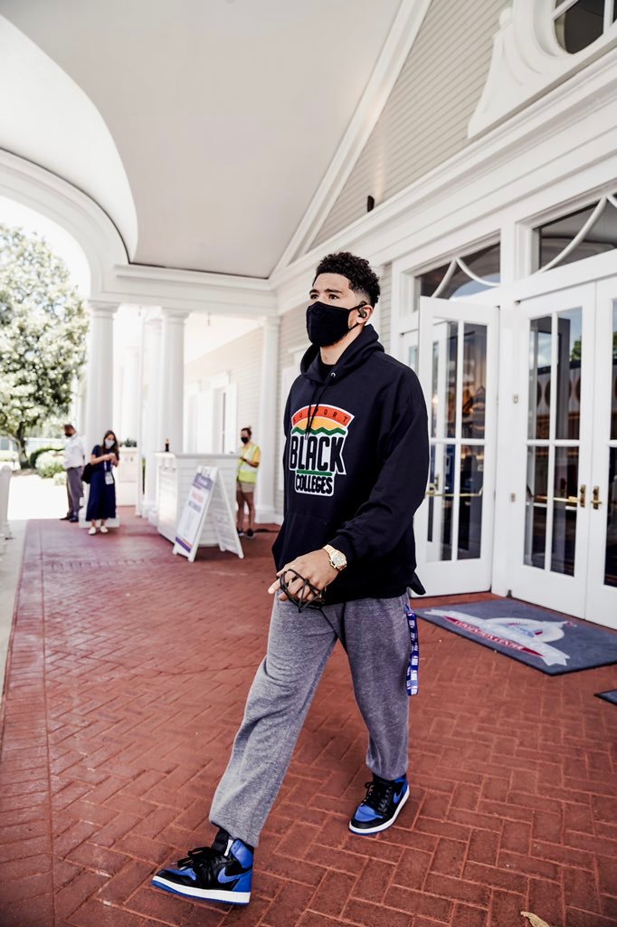 恰巧德文·布克也有一双火星鞋上脚,小编只想问问是不是詹娜喜欢火星鞋啊...