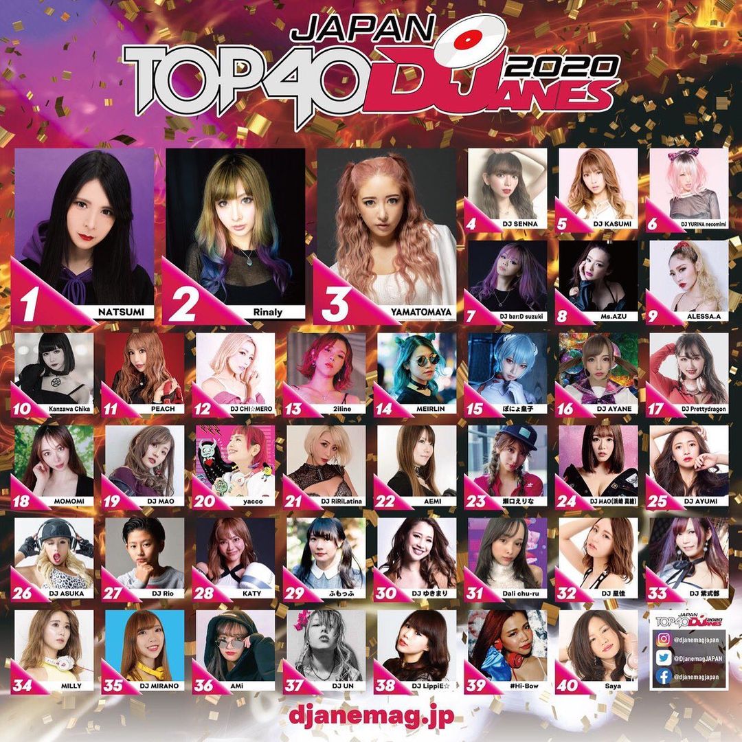 DJ Natsumi 作为日本女 DJ,曾在 2019 年以及 2020 年连续两年斩获 DJ MAG 2019 Japan 排名第一的成绩。