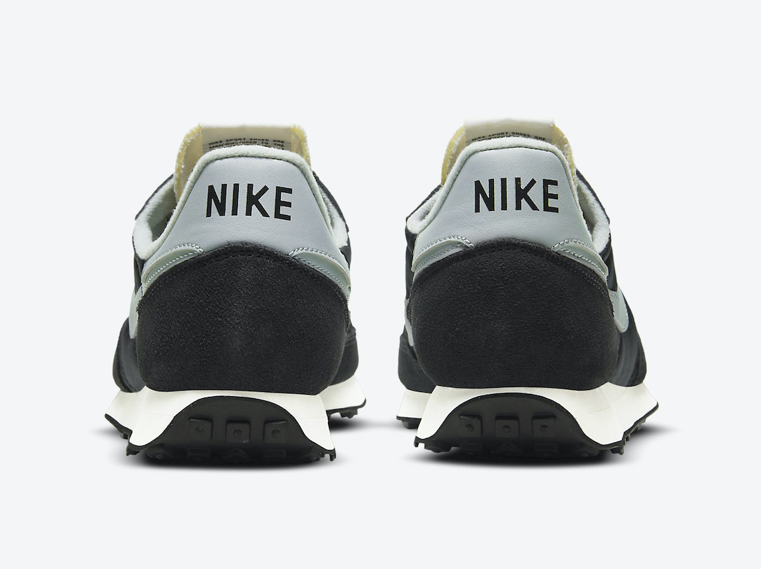 鞋身整体以黑色为主,鞋面、后跟及侧身 Swoosh 选用灰色,中底选用白色,层次分明。