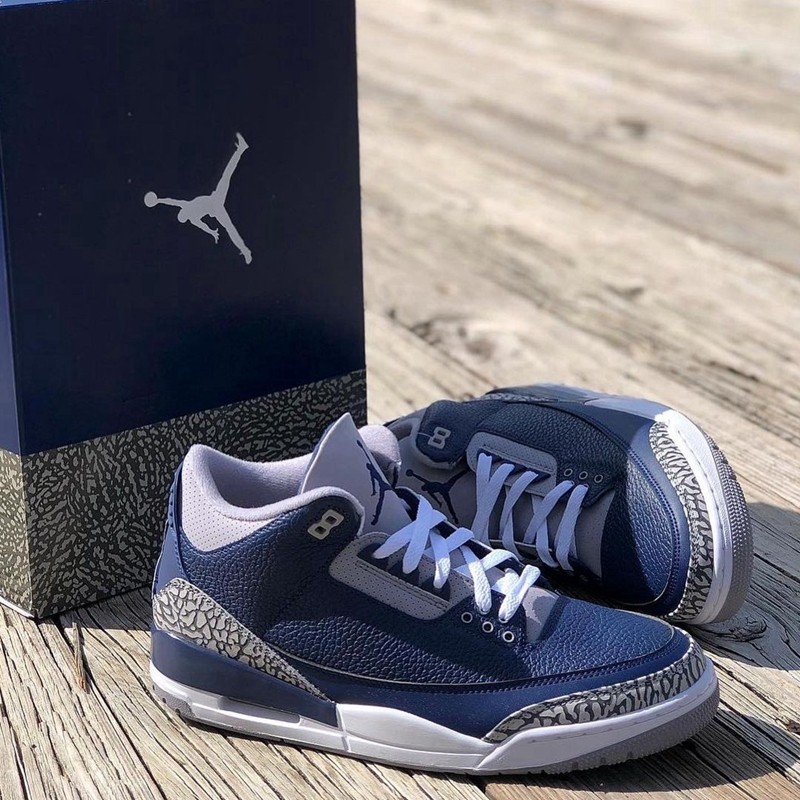 整双鞋以通体海军蓝色打造,荔枝皮的鞋身提升整体质感,彰显出 Air Jordan 3 一如既往的高规格。