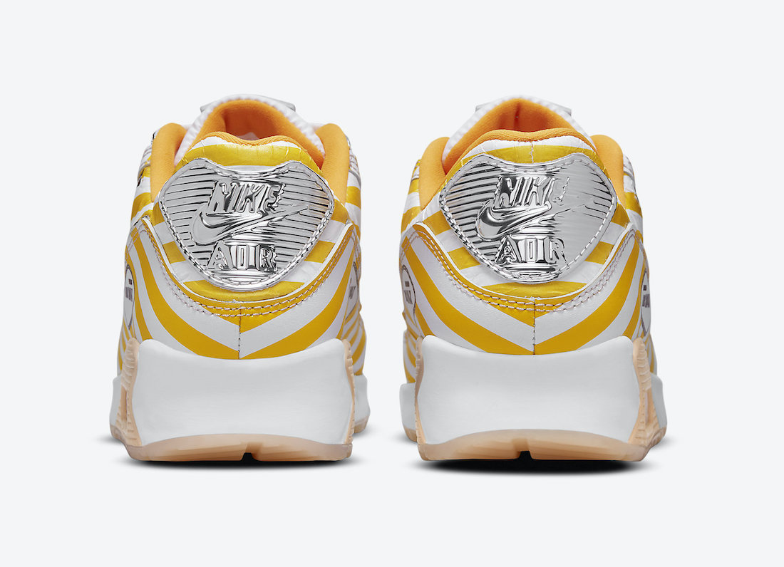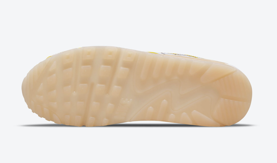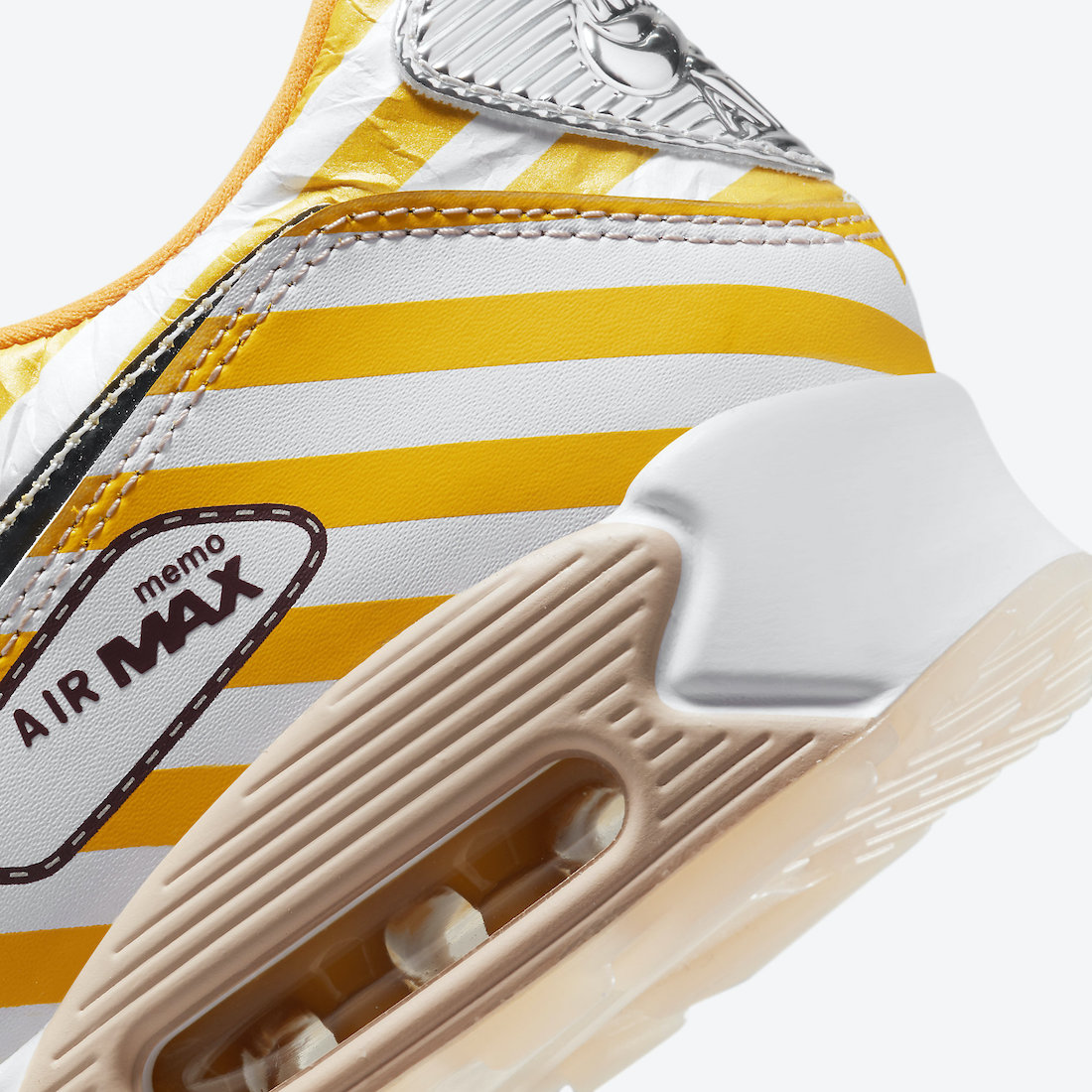 鞋身整体以白、黄条纹覆盖,灵感来自于日本炸鸡常用的外包装。