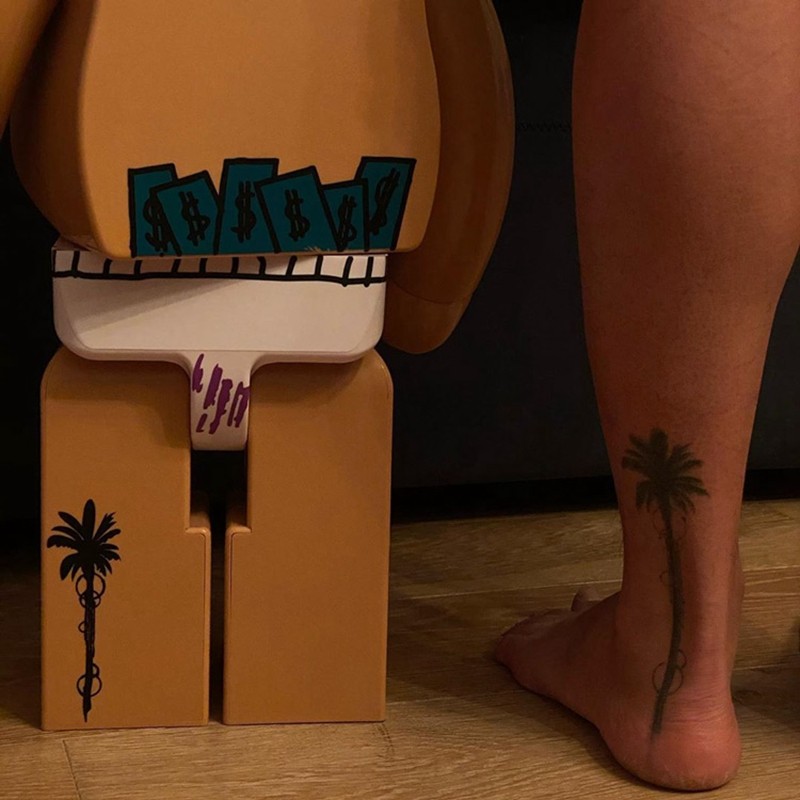 将后脑标签由「Hi I’m stupid!」变成了「 I’m boss!」,腰部的钞票亦变得更多,耳朵后印「2020」字样。