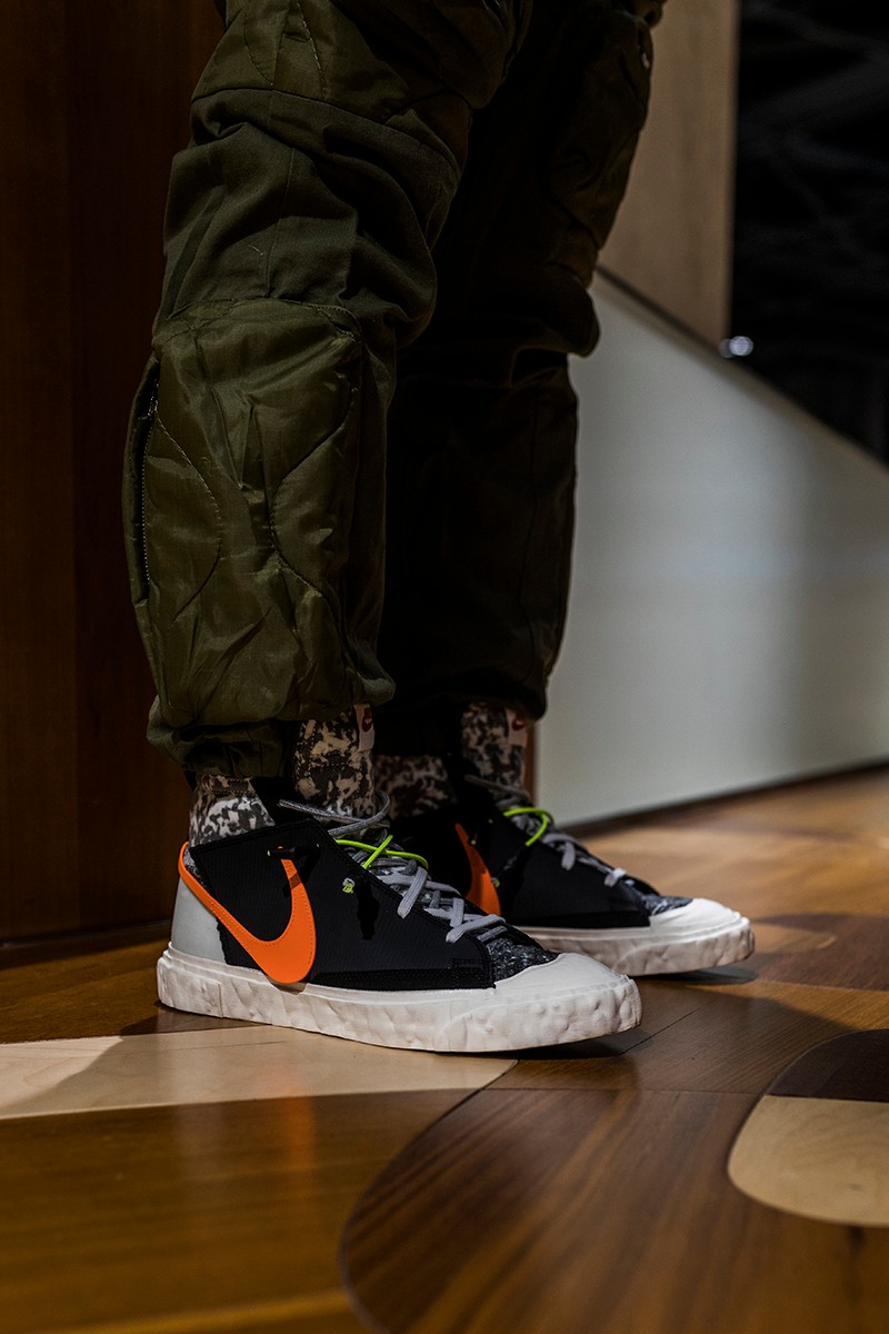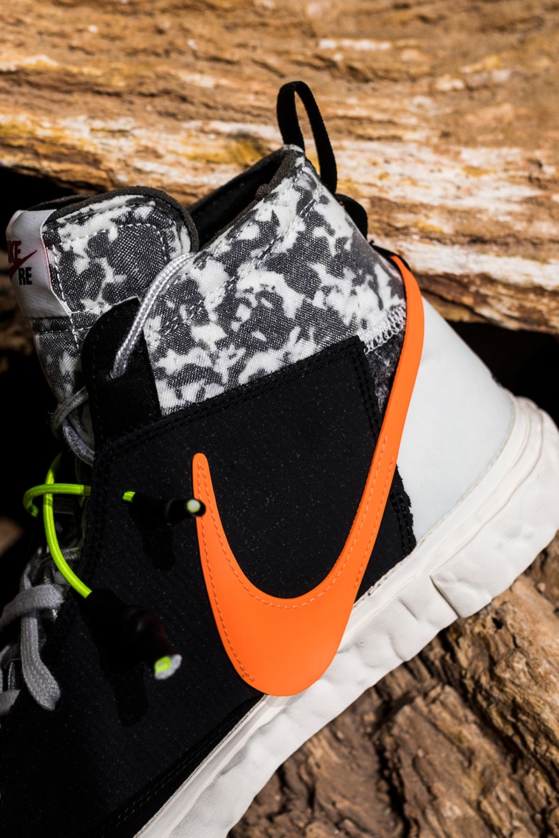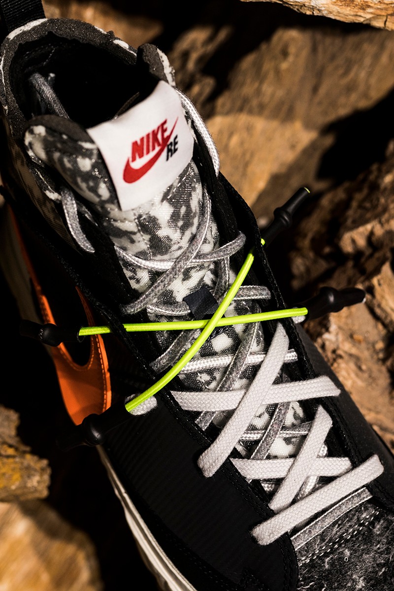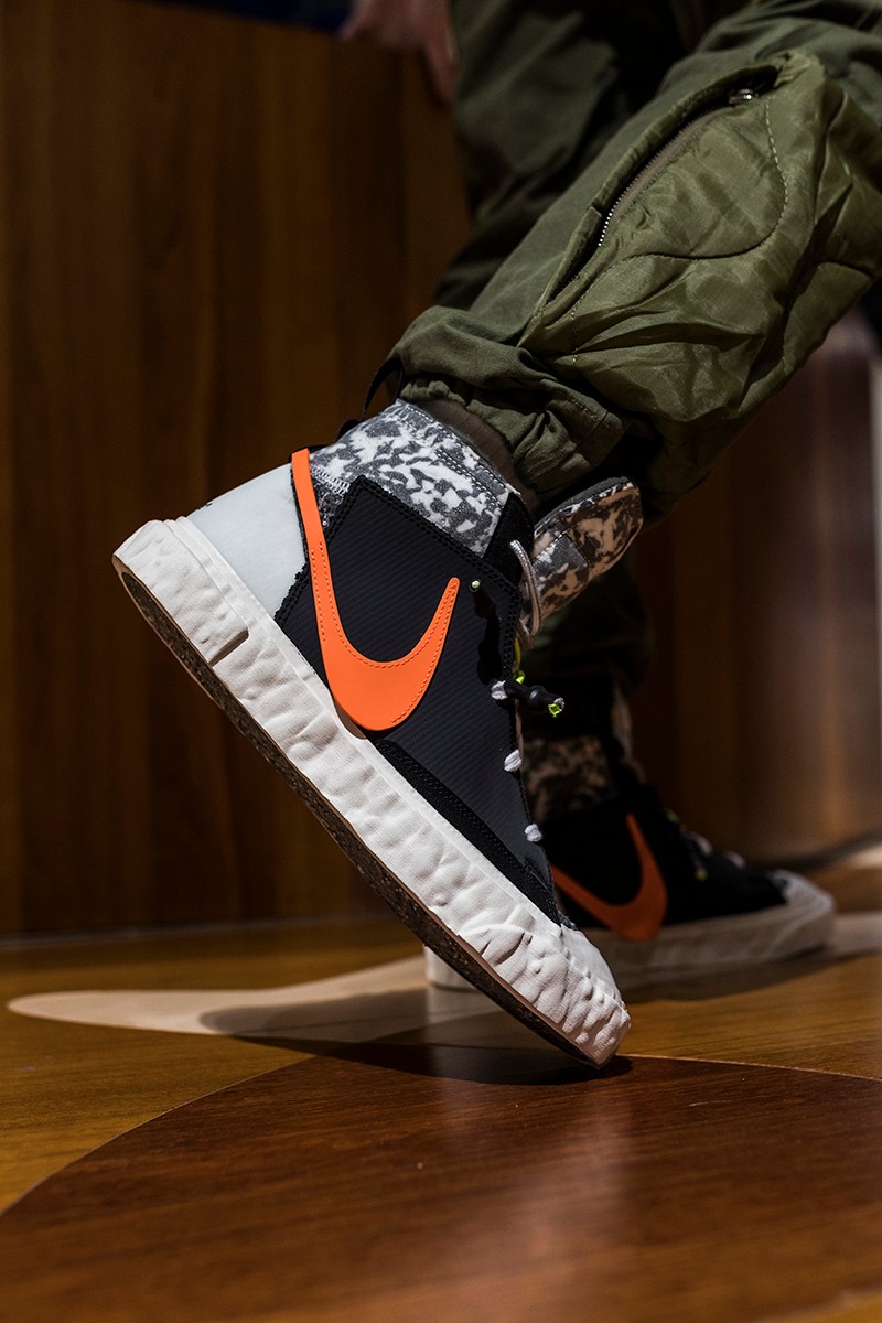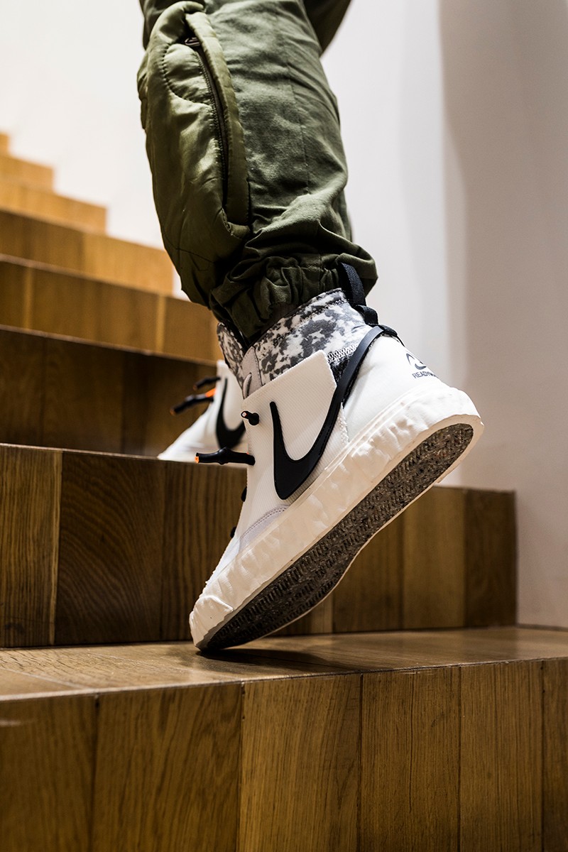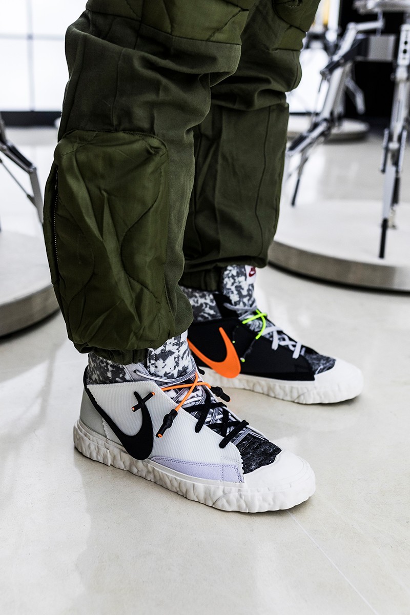 此次 READYMADE 与 Nike 以经典 Blazer Mid 作为设计蓝本,通过破坏、重构、拼接等 READYMADE 惯用的设计手法,实现了将 Blazer Mid 大刀阔斧的重做!
