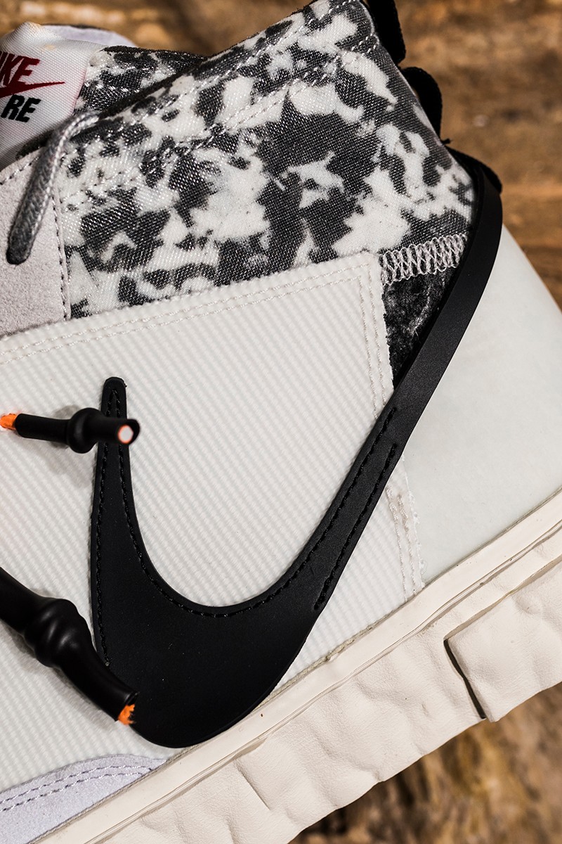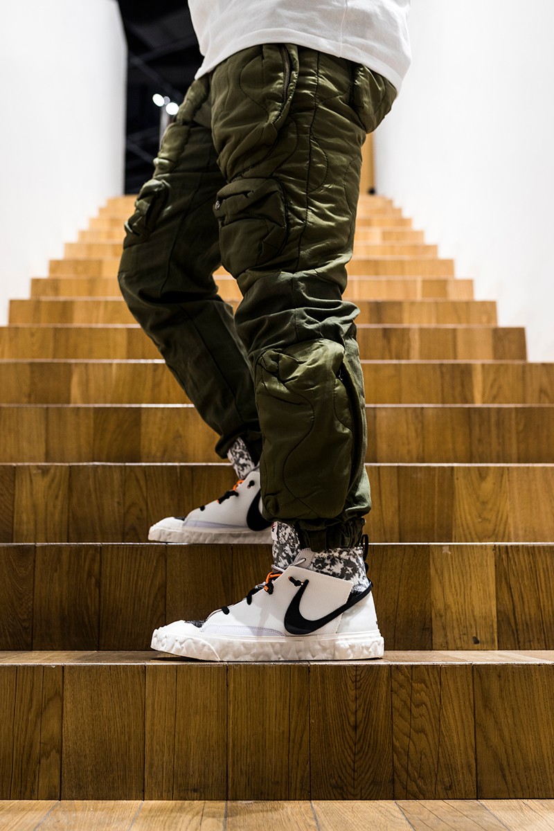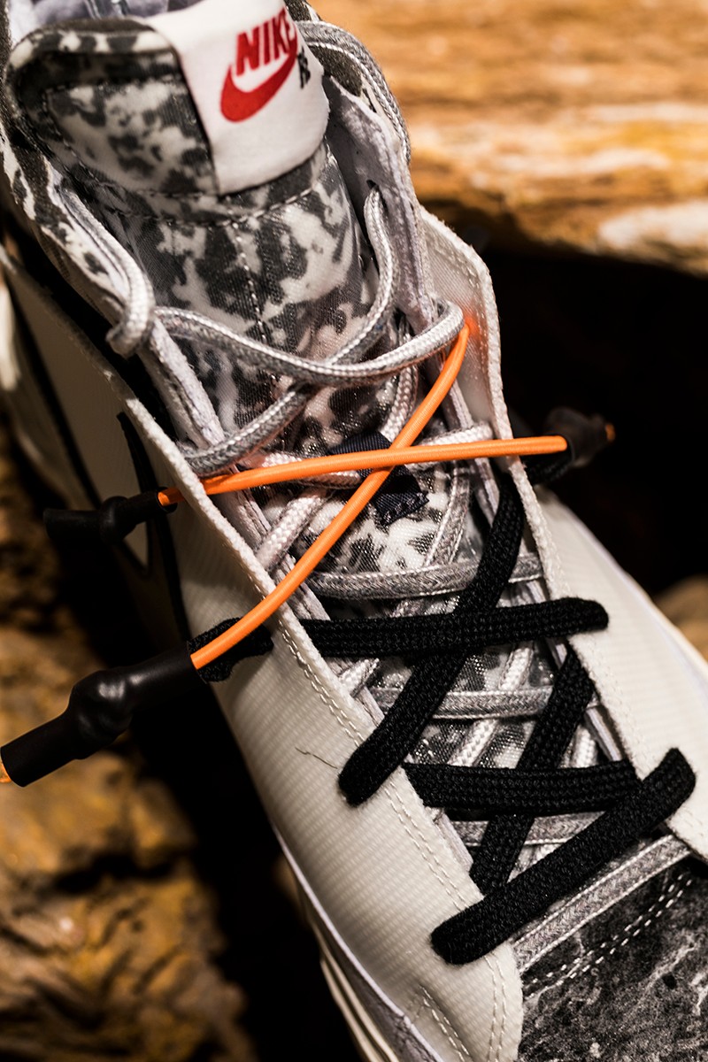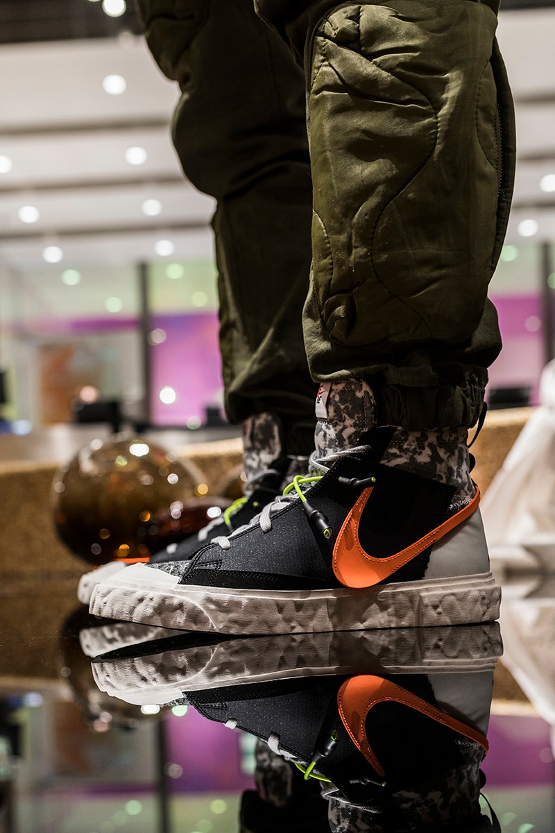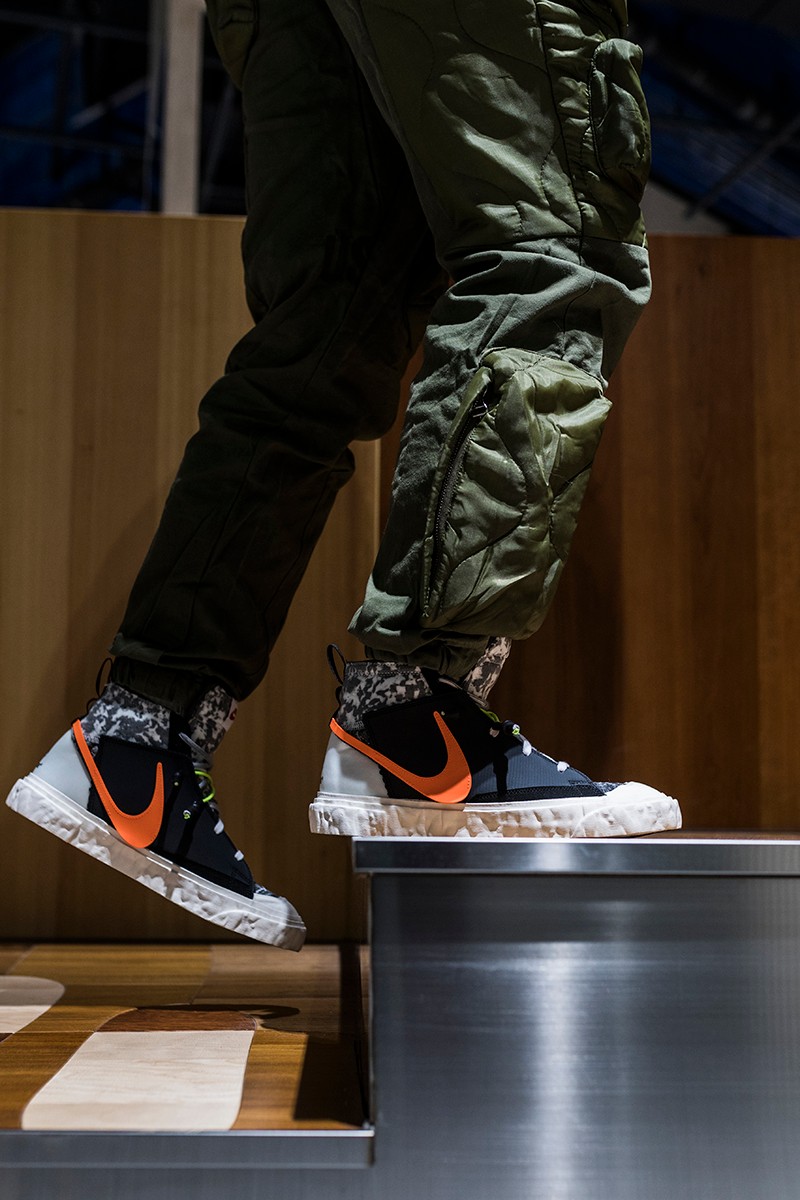 此次 READYMADE 与 Nike 以经典 Blazer Mid 作为设计蓝本,通过破坏、重构、拼接等 READYMADE 惯用的设计手法,实现了将 Blazer Mid 大刀阔斧的重做!
