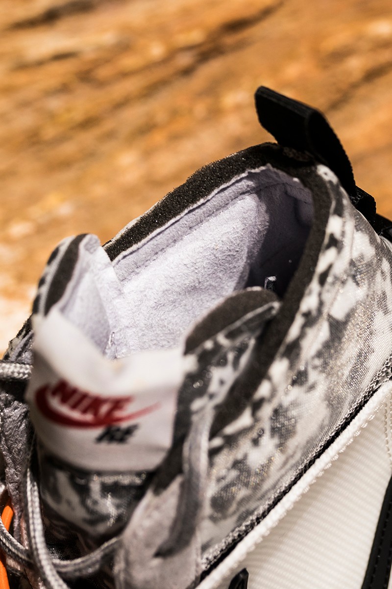 鞋头采用乳白色橡胶材质打造,不同于常规 Blazer Mid 的鞋头,此次双方为整双鞋加入了类似溶解鞋的概念,不规则设计顺应当下的流行趋势!