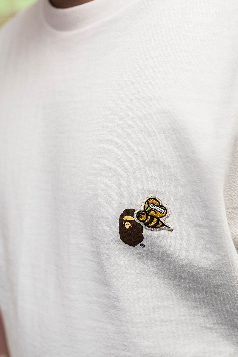 胸前刺绣 BAPE 标志性猿人头以及 READYMADE 蜜蜂 Logo,展现联名身份。