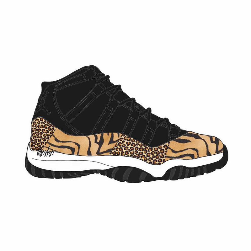 今年则以黑色植绒鞋面为基底,搭配此前类似 AJ3 动物园的兽纹细节。